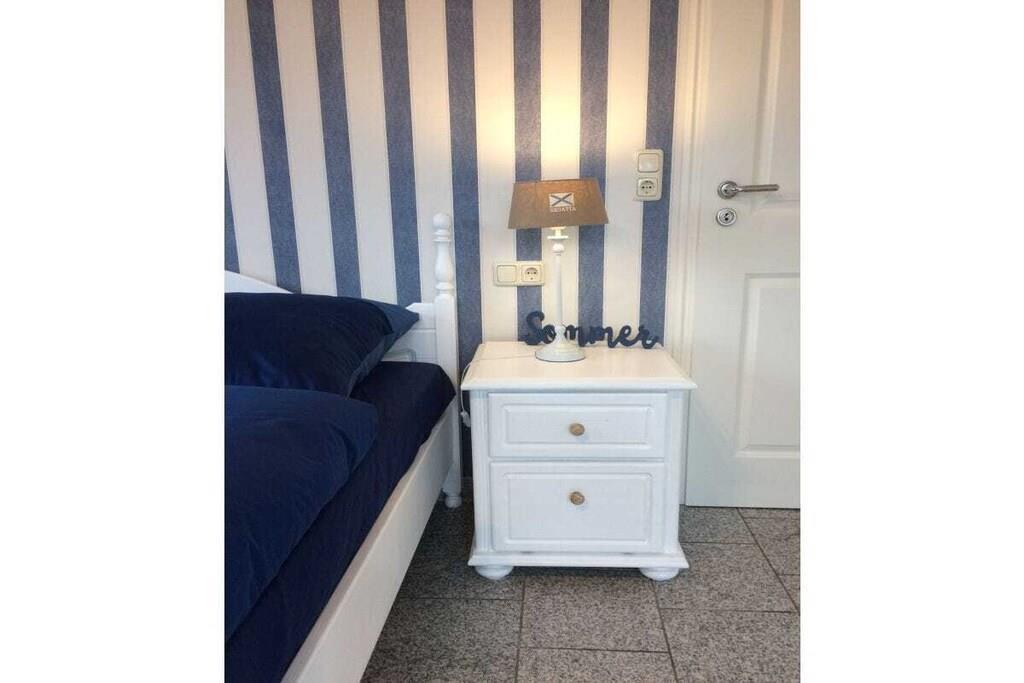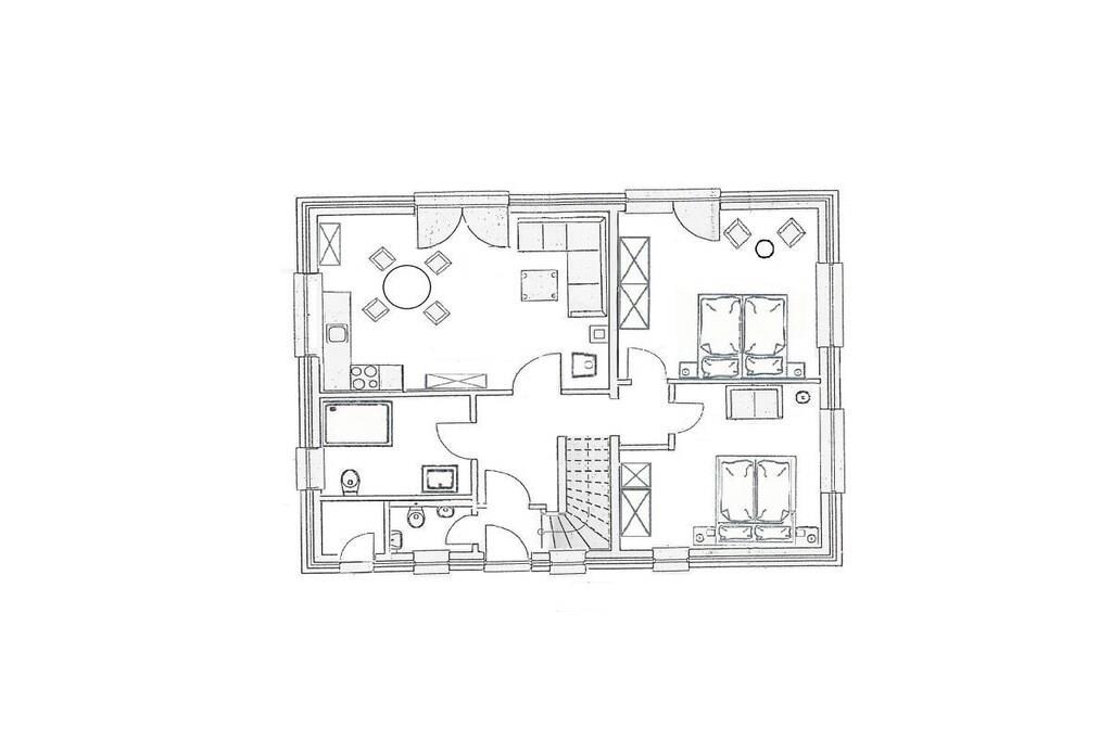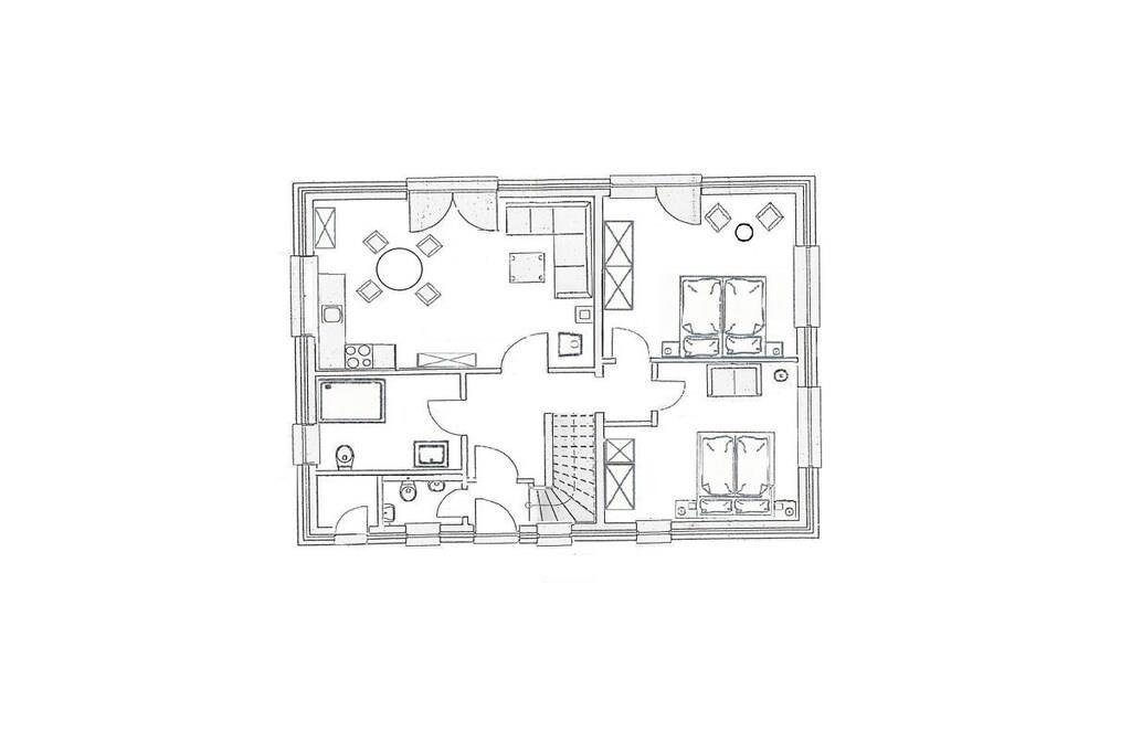 Ground floor: (hallway(Mirror, Wardrobe Coatrack, heating), open kitchen(Egg Cooker, Mixer, TV, dining table, stove, hob, electric kettle, toaster, cooker, coffee machine, oven, dishwasher, fridge, heating), bedroom(double bed, TV, heating), bedroom(double bed, heating), bathroom(Mirror, toilet, shower, washbasin, heating), storage(Vacuum Cleaner, drying cabinet)) Hot Water, Internet Access DSL, Internet Access ISDN, Vacuum Cleaner, carport, Internet access, Internet access, washing machine, heating, terrace(Sun Umbrella, Beach, garden furniture, sun loungers, awning), iron, drying cabinet