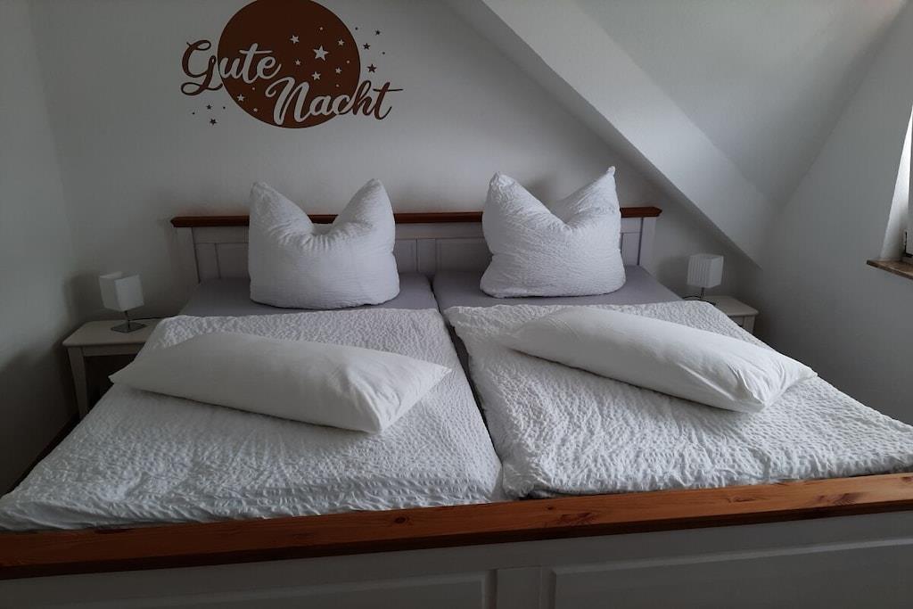 Stueetage: (Stue(, bibliotek, Fjernsyn, spisebord, radio, stereoanlæg, insektnet), Køkken(, , kogeplade, elkedel, brødrister, kaffemaskine, ovn, mikrobølgeovn, opvaskemaskine , køleskab, fryser, fryser, insektnet)) På 1. etage: (soveværelse(, , dobbeltseng, Fjernsyn, insektnet), soveværelse(, , enkeltseng, enkeltseng, insektnet), badeværelse(, toilet, bruser, håndvask, føntørrer)) , , , Internetadgang, varme, terrasse(, grill, havemøbler, solstole), parkering, parkering, trappegitter, strygebræt, strygejern, tørreskab, telefon