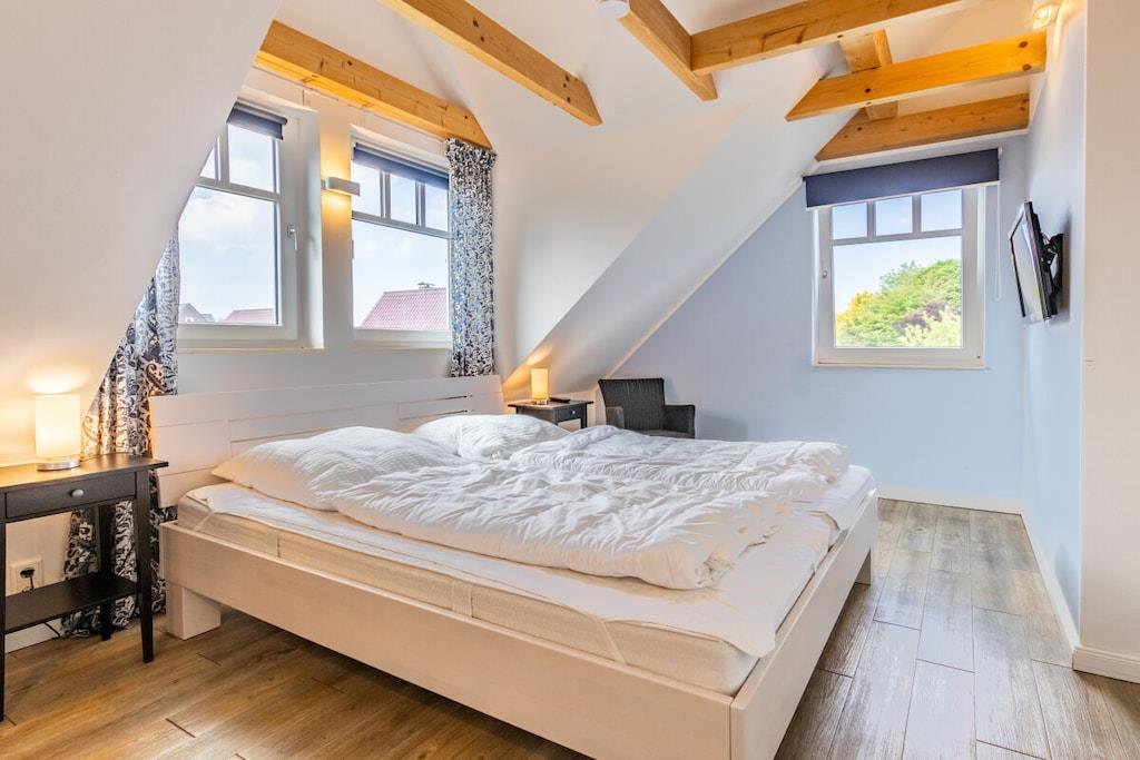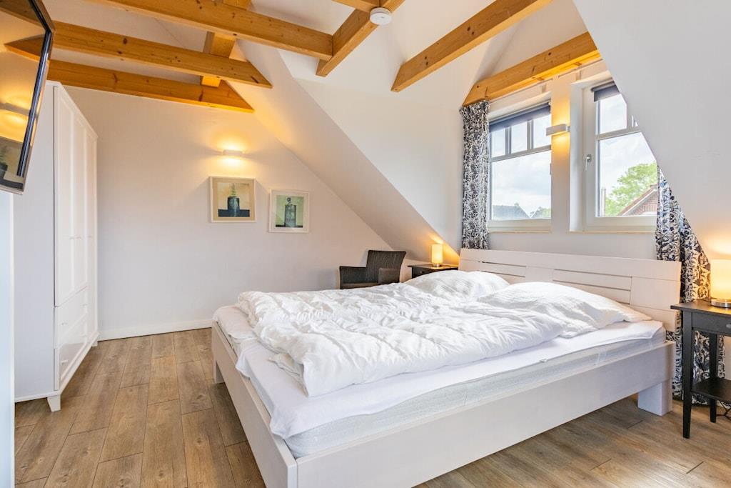 Stueetage: (loungemøbler(, , , bibliotek, Fjernsyn, Fjernsyn, DVD-afspiller, DVD-afspiller, Blu-ray afspiller, radio, CD-afspiller, stereoanlæg, varme, insektnet)) På 1. etage: (soveværelse(, enkeltseng, enkeltseng, dobbeltseng, dobbeltseng, Fjernsyn, tremmeseng, varme), soveværelse(, enkeltseng, enkeltseng, dobbeltseng, dobbeltseng, Fjernsyn, tremmeseng, varme)) , , , Køkken(, spisebord, kogeplade, elkedel, brødrister, kaffemaskine, ovn, mikrobølgeovn, opvaskemaskine , køleskab, varme, insektnet), badeværelse(, toilet, bruser, bruser, håndvask, varme), badeværelse(, toilet, bruser, bruser, håndvask, varme), pulterkammer(, vaskemaskine, strygebræt, strygejern, tørreskab), Internetadgang, Internetadgang, vaskemaskine, varme, terrasse(, havemøbler, solstole), have(Græsplæne, grill, Haveskur), parkering, strygebræt, strygejern, tørreskab, Vaskeripakke mod et gebyr, telefon