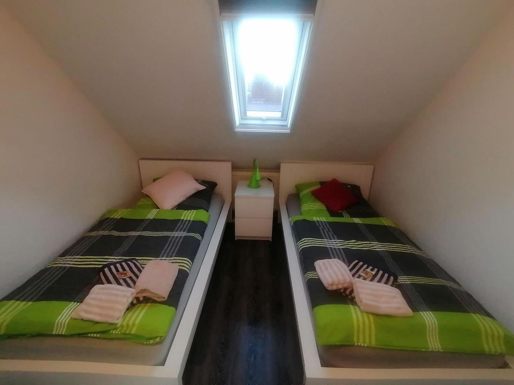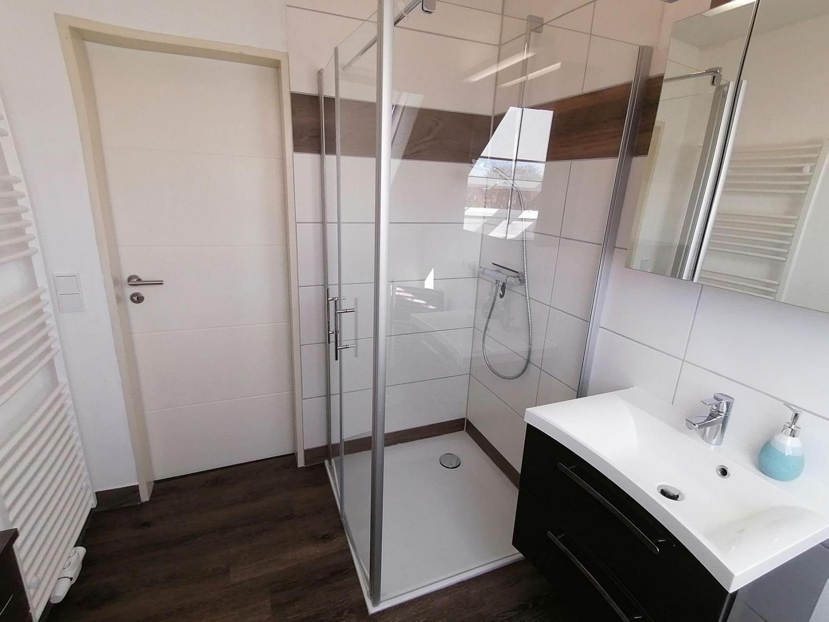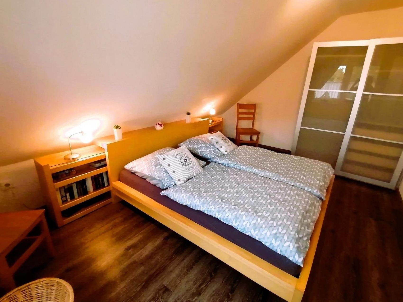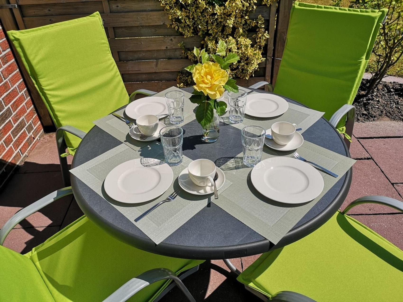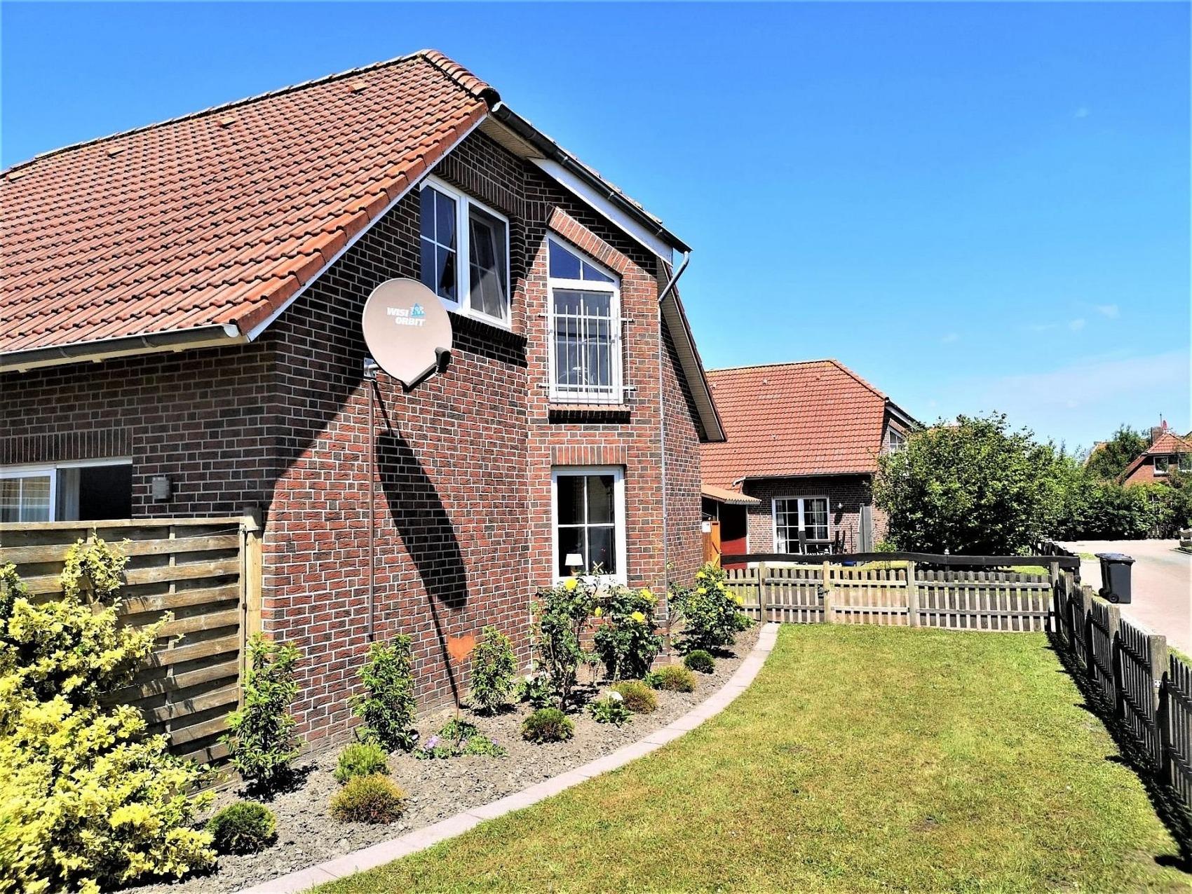 Dieses Ferienhaus bietet Ihnen viel Platz und Ruhe, um einen erholsamen Urlaub mit der ganzen Familie zu verbringen.Das Haus ist durch die großzügigen Fenster, im Wohn- und den Schlafbereichen, hell und freundlich. Das geräumige Wohnzimmer mit Essbereich, und die gut ausgestattete Küche, sorgen für ein angenehmes Wohnambiente.Im Obergeschoss befinden sich 2 Schlafzimmer:1 Schlafzimmer mit Doppelbett (90 x 200 cm je Matratze), Nachtkonsolen mit Nachttischlampen, Schiebetüren-Kleiderschrank und Kinderreisebett (ohne Matratze).1 Schlafzimmer mit zwei Einzelbetten (je 90 x 200 cm), Nachtkonsole mit Nachttischlampe, HiFi-Anlage und Kleiderschrank.Im modernen Tageslichtduschbad befindet sich neben dem WC eine fast ebenerdige Dusche, Spiegelschrank, Waschtisch mit Schubladen, Kosmetikspiegel und Fön.Durch die Eingangstür gelangen Sie in den Flur mit Gäste-WC.Im Wohnzimmer befindet sich die offene Küche mit viel Stauraum. Der Esstisch, für bis zu 6 Personen, steht an den Erkerfenstern und lädt zum gemütlichen Essen und Sitzen ein.Auf der Sofalandschaft können Sie verweilen und durch die Terrassentüren Sie in den Garten sehen.Falls Sie sich beim Fernsehen entspannen möchten, stehen Ihnen Flachbild SAT/Kabel TV mit Blue-Ray-Player und Hi-Fi-Anlage zur Verfügung. W-LAN mit Gastzugang (Surfen und E-Mail) und Telefon stehen Ihnen kostenfrei zur Verfügung.In der voll ausgestatteten Küche finden Sie:GeschirrspülmaschineKühlschrank mit GefrierfachMikrowelleCeran Kochfeld mit BackofenKaffeemaschineSenseo PadmaschineWasserkocherToasterWaffeleisenMixerBack-UtensilienAuf der Terrasse (Süd-West-Richtung) können Sie an entspannten Tagen und Abenden die Sonne genießen. Gartenstühle mit Auflagen, Sonnenliegen, Sonnenschirm und ein Grill stehen Ihnen zur Verfügung.Im Terrassenabstellraum steht auch eine Waschmaschine die Sie nutzen können.Inklusivleistungen:Endreinigung, Nebenkosten, W-LAN, Parkplatz, abschließbarer FahrradraumBettwäsche und Handtücher können gerne gegen eine Gebühr zur Verfügung gestellt werden.Wäschepaket: Bettwäsche & Handtuchpaket (1 Duschtuch/2 Handtücher) pro Person 35,00 Euro.Der Kurbeitrag und ggfls. geliehene Wäsche werden vor Anreise auf das Eigentümerkonto überwiesen.