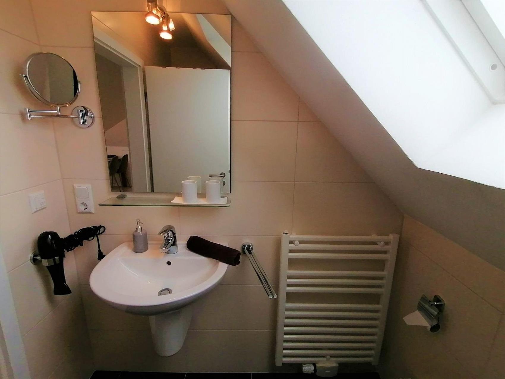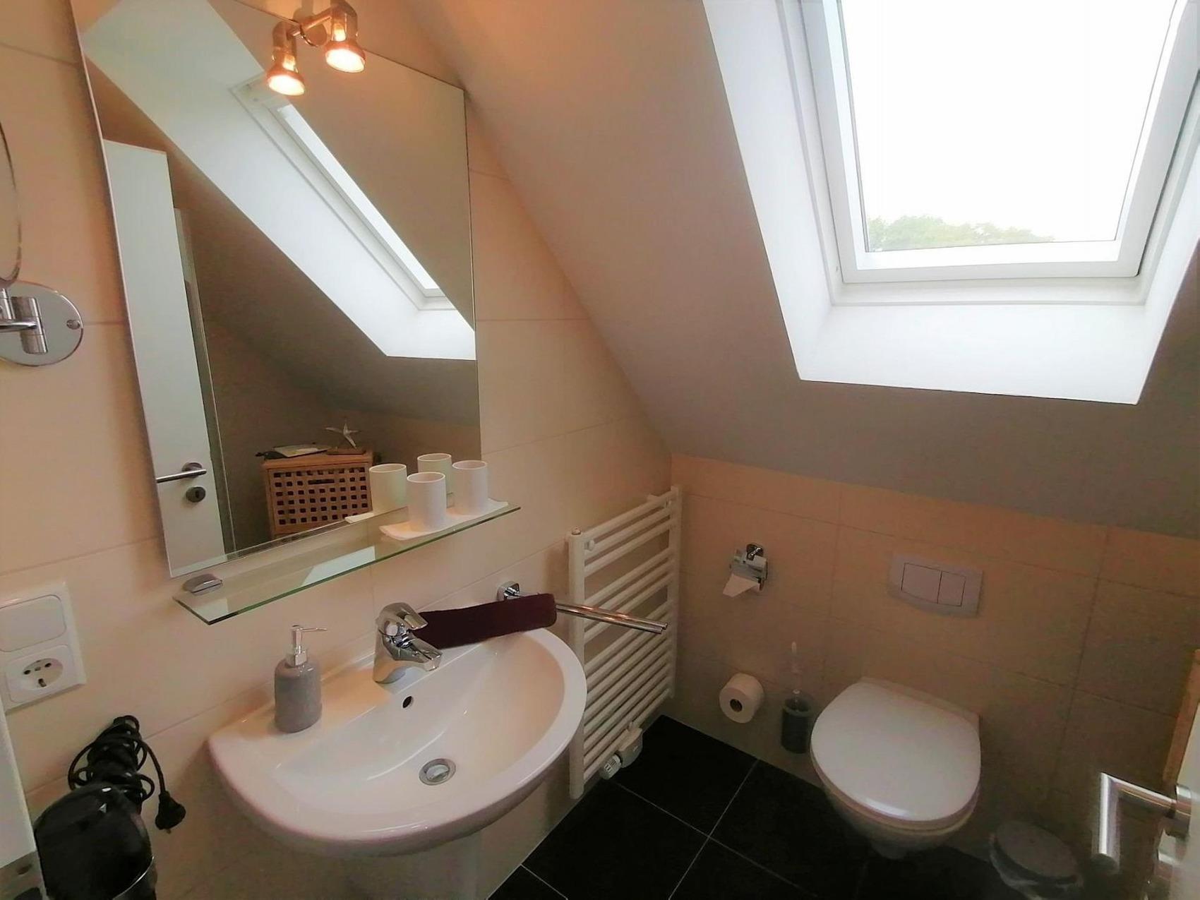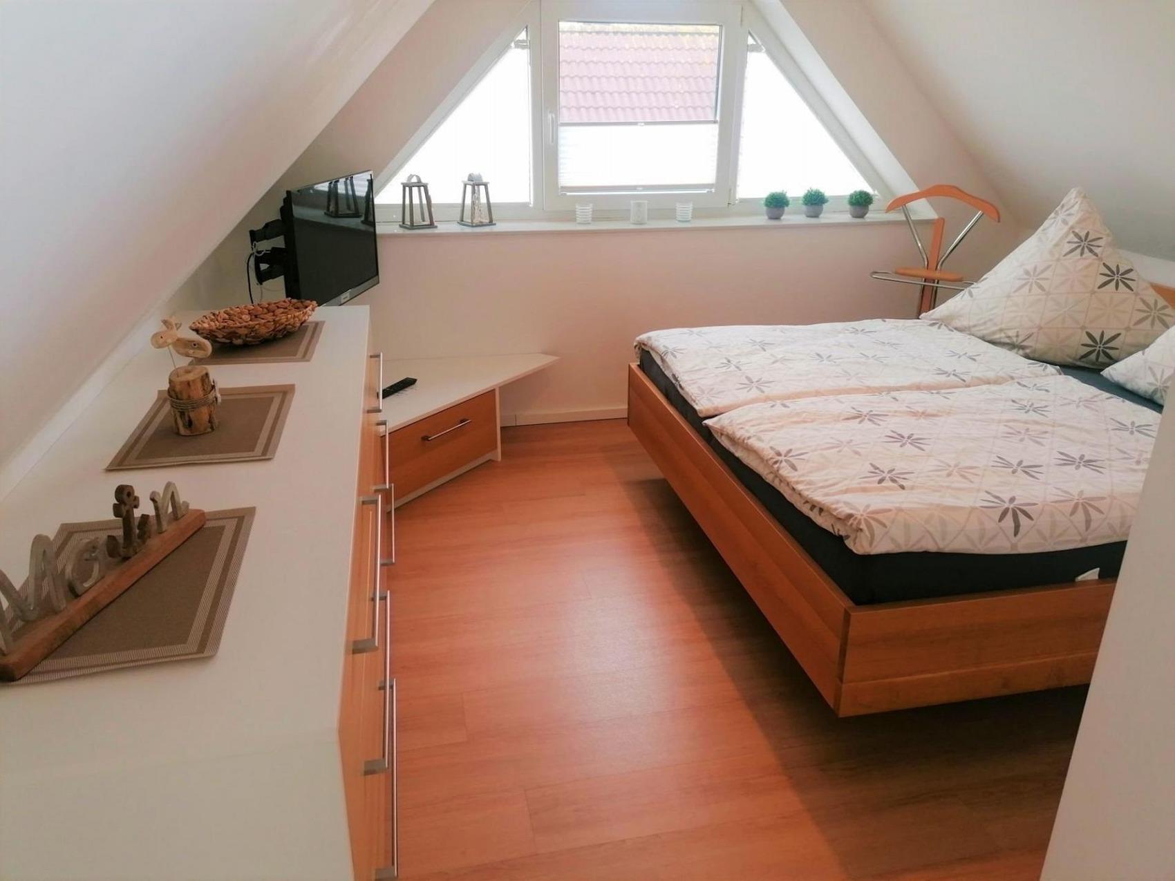 Gemütliche Ferienwohnung (52m²) im 2. OG mit BalkonDie lichtdurchflutete Ferienwohnung liegt in der zweiten Etage und wurde mit viel Geschmack eingerichtet.Zur Verfügung stehen Ihnen ein Wohnraum mit Küche, offenes Schlafzimmer und ein Tageslichtduschbad. Zum Entspannen steht auch ein Balkon (Südseite) zur Verfügung.Zum Wohnzimmerinventar gehören:40 Zoll LED FernseherDigitaler SAT-ReceiverBlu-ray /DVD-Player und FilmeTeufel SoundanlageSchlafsofa mit Topper (Liegefläche 160x200) und ein Relax SesselSpiele / BücherIm Wohnbereich steht ein Schrank mit Ganzkörperspiegel und Kleiderstange zum aufhängen von Kleidung zur Verfügung.Küche mit Essplatz :Kühlschrank mit GefrierfachMikrowelleElektroherd mit InduktionsfeldBackofenKaffeemaschineSenseo PadmaschineToasterWasserkocherGeschirrspülmaschineElektro-TischgrillDer Schlafzimmerbereich ist offen und nicht durch eine Tür vom Wohnbereich getrennt:1 Doppelbett (180x200 cm) mit getrennten Matratzen 2 große Kopfkissen (80x80 cm) und 2 schmale Kopfkissen (40x80 cm) zur AuswahlBettdecken für jede JahreszeitAblage am Bett mit LeseleuchtenWecker26 Zoll LCD FernseherSideboard mit großen Schubladen für KleidungIm Tageslicht-Duschbad befinden sich:WCFast ebenerdige DuscheHandtuchheizkörperFön und KosmetikspiegelFür die wärmeren Tage, steht ein transportables Klimagerät zur Verfügung. Die Dachfenster sind mit wärmeisolierenden Fliegenschutzgitter ausgestattet.1 Kfz-Stellplatz vor dem HausFahrradschuppen (abschließbar) und Auflade Möglichkeit für E-BikesDie Ferienwohnung liegt in der zweiten Etage, somit ist Treppensteigen erforderlichBei Anreise liegt eine Erstausstattung für Sie bereit.Bettwäsche und Handtücher können gerne gegen eine Gebühr zur Verfügung gestellt werden.Wäschepaket: Bettwäsche & Handtuchpaket (1 Duschtuch/2 Handtücher) pro Person 35,00 Euro.Der Kurbeitrag wird vor Anreise auf das Eigentümerkonto überwiesen.