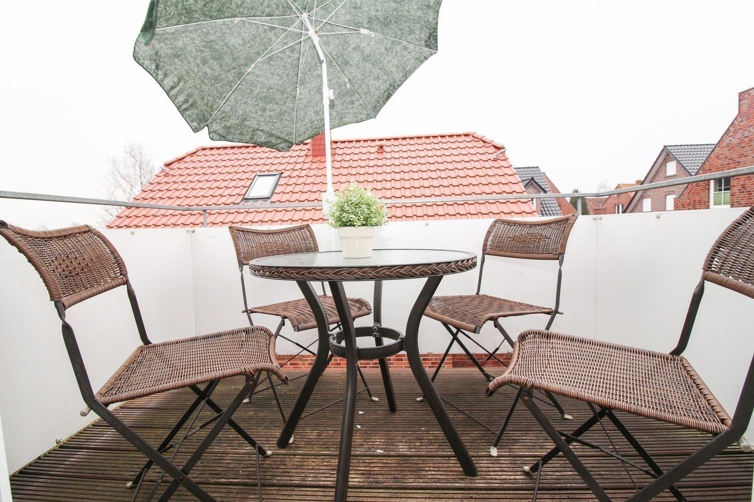 Sonniger Balkon inkl. Möbel für vier Personen