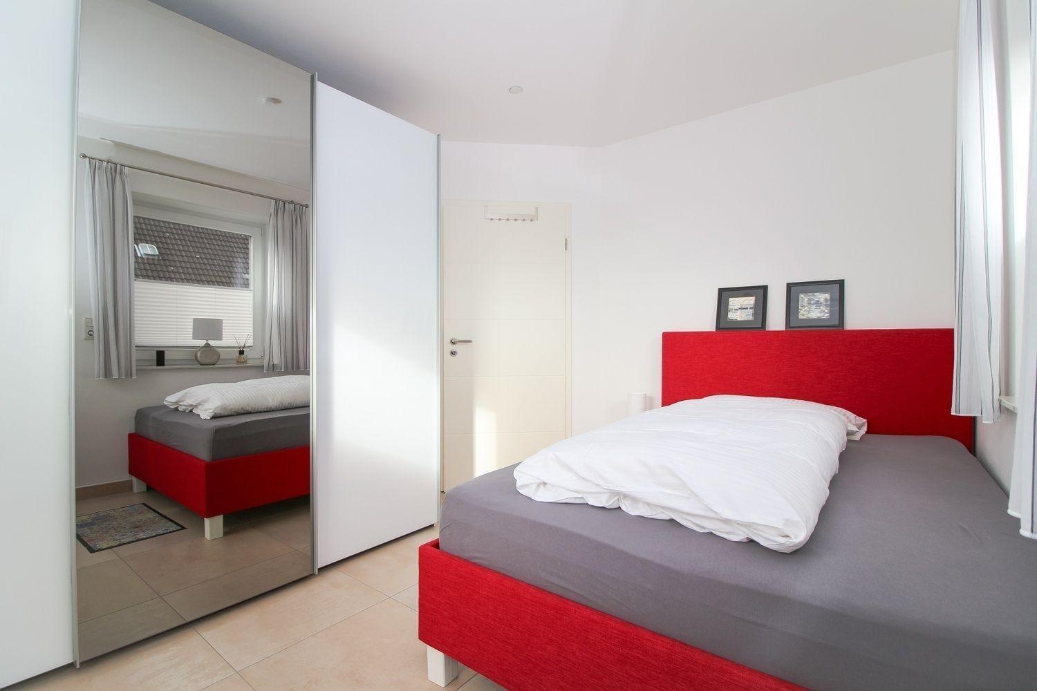 Das zweite Schlafzimmer bietet ein Polsterbett und einen großen Kleiderschrank.