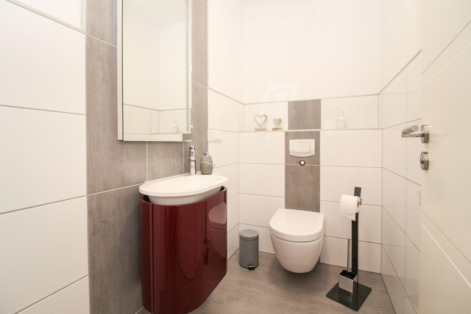 Eine Erstausstattung (Spülmaschinentab, WC-Papier, kl. Flasche Spülmittel, Spültuch und Topfschwamm) ist vorhanden.