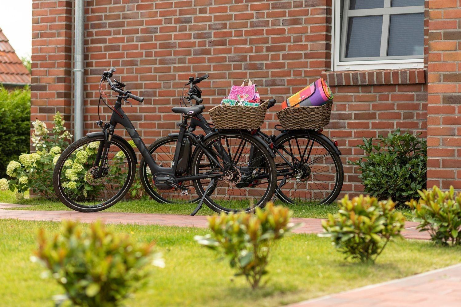 Zwei Elektrofahrräder (Husqvarna, 8-Gang, Rücktrittbremse, 2 Größen, mit Korb) können gerne, in eigener Verantwortung, benutzt werden. (Hierbei handelt es sich um ein kostenloses Angebot, ohne Gewähr.)
