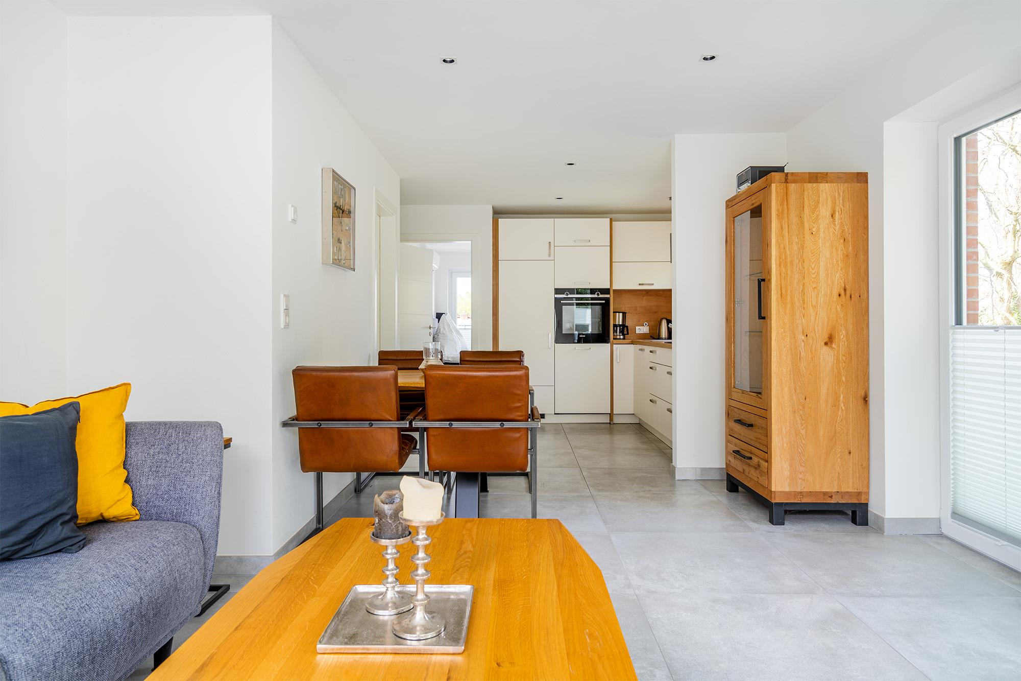 Modern, sehr zentral und ruhig gelegen - das beschreibt unsere kürzlich sanierte Wohnung "Die Zimmerei 5" am besten. Sie befindet sich im Obergeschoss und bietet auf etwa 70qm zwei Schlafzimmer mit bequemen Boxspringbetten, ein modernes Tageslichtbad mit ebenerdiger Dusche sowie einen hellen und großzügigen Wohn-Ess-Bereich. Neben der voll ausgestatteten Küchenzeile und dem Zugang zum Sonnenbalkon finden Sie hier auch ein Sitzfenster, in das man sich mit einer guten Tasse Ostfriesentee zurück ziehen kann. Die zentrale Lage des Hauses ermöglicht Ihnen, alles zu Fuß zu erledigen. Selbstverständlich steht Ihnen ein eigener Parkplatz am Haus zur Verfügung. Sollten Sie mit einem E-Auto anreisen, verfügt das Objekt auch über eine Ladesäule, die Sie hinzu buchen können.