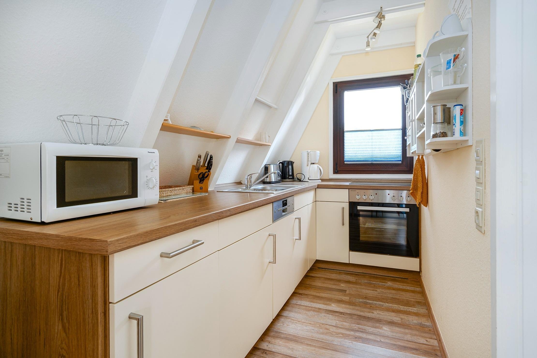 In der ruhigen Nordseestraße, nur wenige hundert Meter vom Deich entfernt, erwartet Sie das liebevoll eingerichtete Ferienhaus „Hänsel und Greetsiel“ – ein charmantes Nurdachhaus, das norddeutsche Gemütlichkeit mit moderner Funktionalität verbindet. Auf etwa 60qm bietet das Haus auf zwei Etagen Platz für insgesamt vier Personen. Im Erdgeschoss befindet sich der helle und gemütliche Wohn- und Essbereich mit großer Wohnlandschaft, einem Esstisch und angrenzender voll ausgestatteter Küchenzeile – der perfekte Ort für entspannte Abende. Große Fenster sorgen für viel Licht und einen schönen Ausblick in den Garten. Ein modernes Tageslichtbad sowie der direkte Zugang zur Terrasse machen das Erdgeschoss besonders komfortabel. Im Obergeschoss befinden sich zwei behagliche Schlafzimmer: eines mit einem Doppelbett, das andere mit zwei Einzelbetten und einem Schreibtisch – ideal für Familien oder Freunde. Die Einrichtung mit klassischen Holzmöbeln verleiht dem Obergeschoss eine warme, traditionelle Atmosphäre. Ein separates WC sorgt zusätzlich für Bequemlichkeit. Die frische Nordseeluft genießen Sie auf der Terrasse mit Markise und dem großzügigen Garten, wo sich auch ein Fahrradabstellraum befindet. Selbstverständlich steht Ihnen ein eigener PKW-Stellplatz am Haus zur Verfügung. Das Ferienhaus „Hänsel [&] Greetsiel“ bietet somit die perfekte Mischung aus Ruhe, Natur und Nähe zum charmanten Ortskern von Greetsiel – ein idealer Ort für Erholung und Nordseeluft.