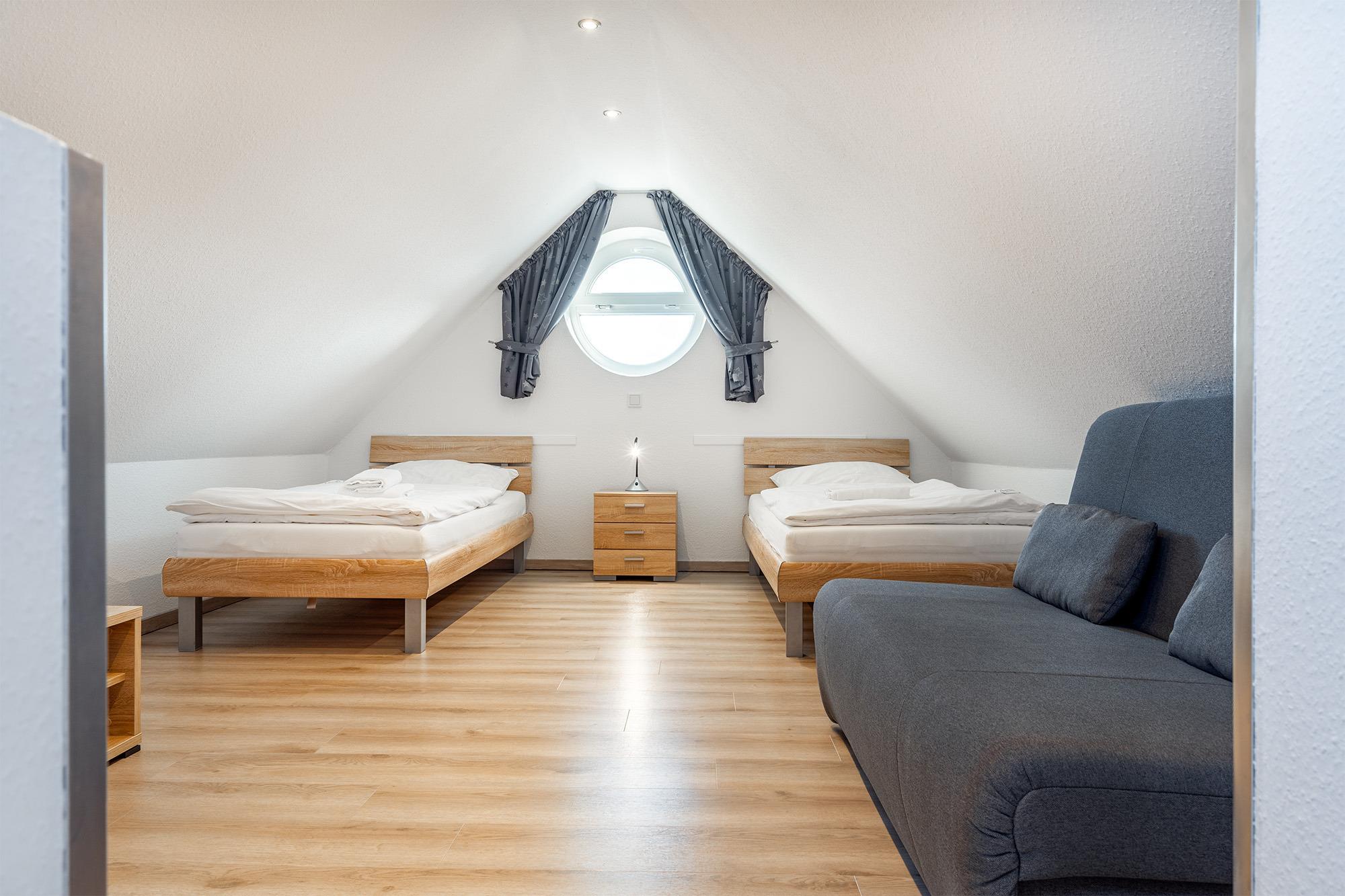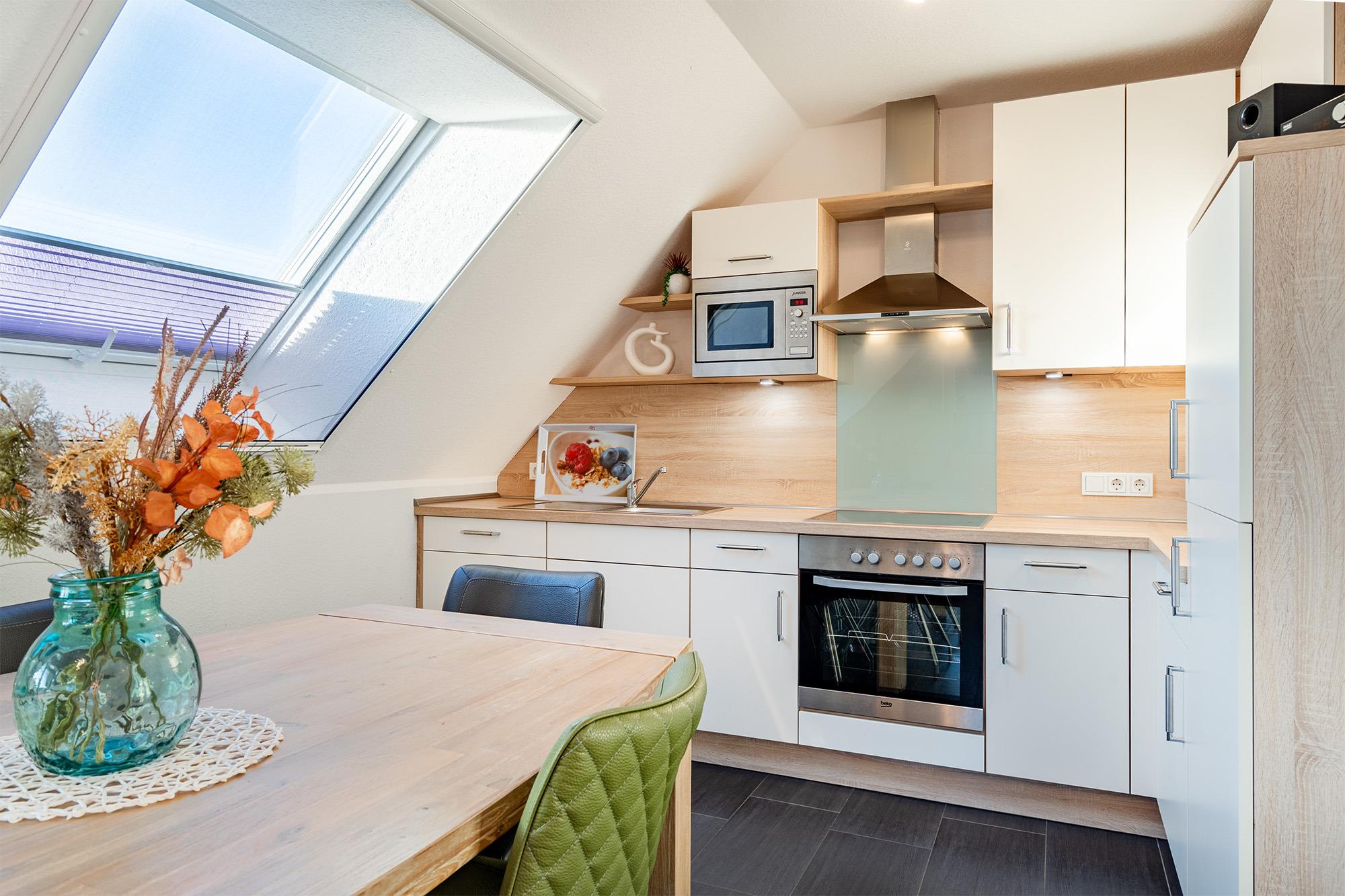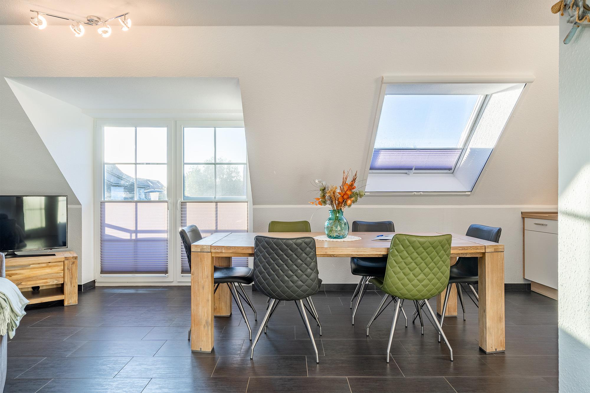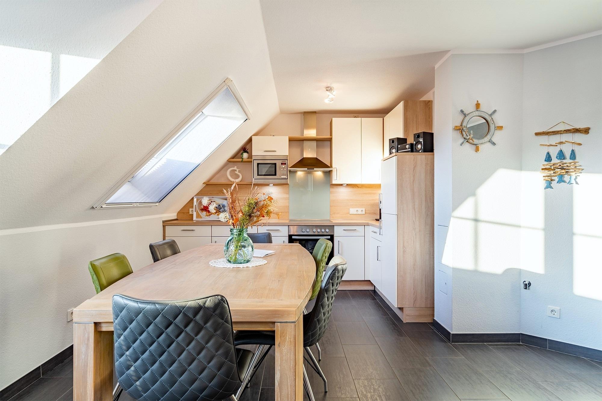Herzlich willkommen in unserer Ferienwohnung "Küstenzeit". Zur modernen und hochwertigen Einrichtung dieser Wohnung im Obergeschoss gehören zwei Schlafzimmer, ein Tageslichtbad, Fußbodenheizung sowie eine voll ausgestattete Küche. Der lichtdurchflutete und gemütliche Wohnraum bietet mit seinem großen Esstisch viel Platz zum gemeinsamen Verweilen, sowie Zugang zum möbilierten Balkon, von dem aus Sie die bekannten Greetsieler Zwillingsmühlen sehen und die Sonnenstunden genießen können. Das Hauptschlafzimmer bietet Ihnen ein gemütliches Doppelbett und einen geräumigen Kleiderschrank. Das zweite Schlafzimmer befindet sich im ausgebauten Spitzboden (Galerie) und verfügt über zwei Einzelbetten und eine Sitzecke. Selbstverständlich stehen Ihnen ein eigener Parkplatz, sowie eine Abstellraum für Ihre Fahrräder zur Verfügung.