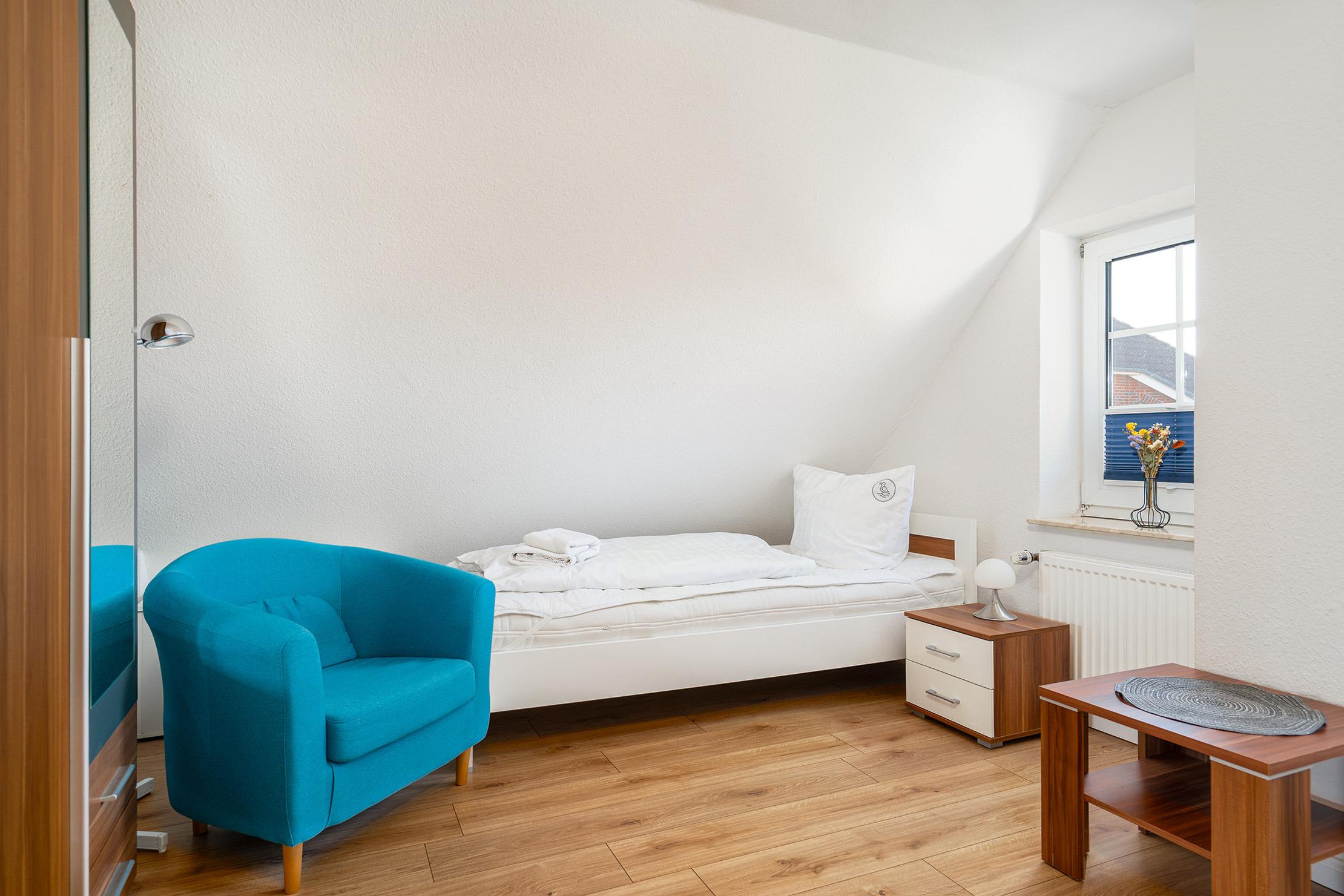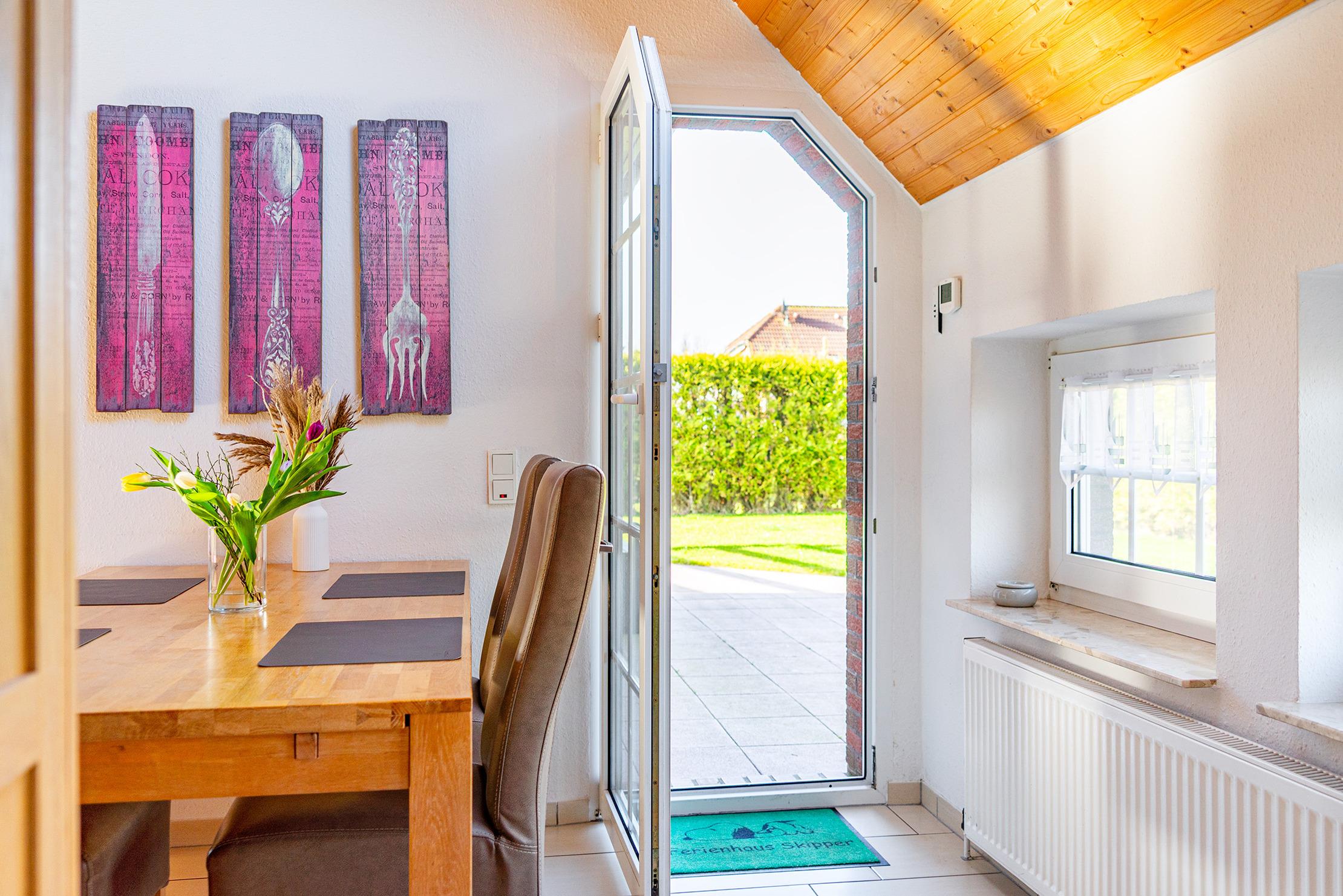 Das Ferienhaus "Skipper" erwartet Sie mit 105qm als traumhaftes, helles und gemütliches Feriendomizil mit viel Platz und Komfort für den gemeinsamen Urlaub mit der Familie oder Freunden. Der Wohnbereich mit großer Sofalandschaft und Kamin verspricht behagliche Abende bei knisterndem Feuer. Die separate und voll ausgestattete Küche mit Fußbodenheizung, der helle und geräumige Essbereich, das Schlafzimmer mit Doppelbett sowie das Tageslichtbad mit ebenerdiger Dusche und Fußbodenheizung runden die Ausstattung im Erdgeschoss ab. Im Obergeschoss bietet das Haus ein weiteres Schlafzimmer mit zwei Einzelbetten, ein zweites Tageslichtbad sowie einen Relax-Raum, in dem es sich in gemütlichen Sesseln bei einem guten Film entspannen lässt. Das ganze Haus überzeugt durch großzügige und helle Räume. Ein absolutes Highlight ist der weitläufige, eingezäunte Garten mit einer überdachten Terrasse und elektrischen Markise – ideal für laue Sommerabende mit einem Glas Wein oder frischer Nordseeluft bei einer heißen Tasse Tee. Hier kommt jeder auf seine Kosten, egal ob Kinder oder Ihr Vierbeiner. Auch die beiden vorhandenen PKW-Stellplätze und die ruhige Lage in einer Sackgasse unweit des Greetsieler Hafens machen das Haus zu einem idealen Rückzugsort für die gemeinsame Zeit mit Freunden oder der Familie.