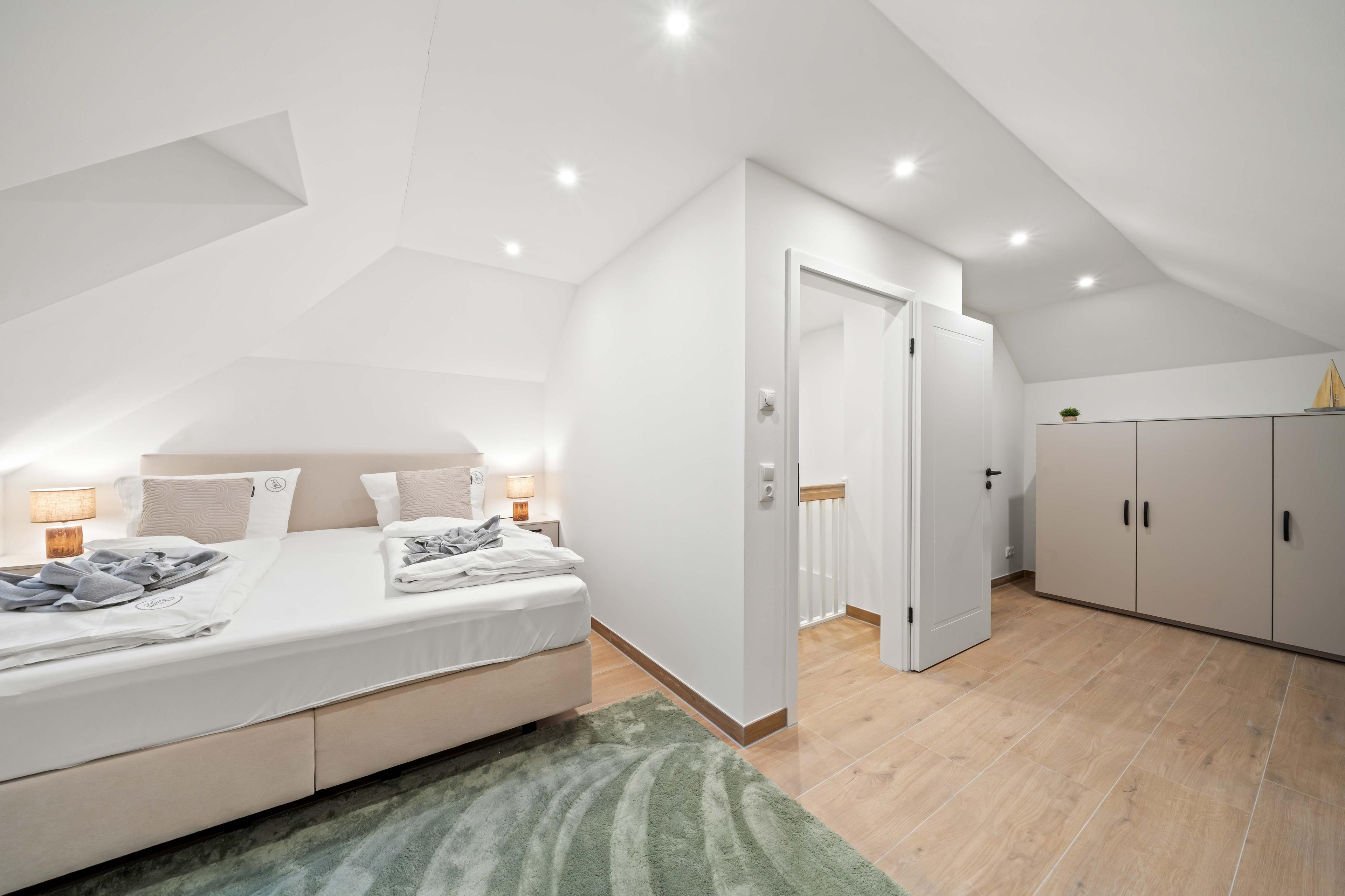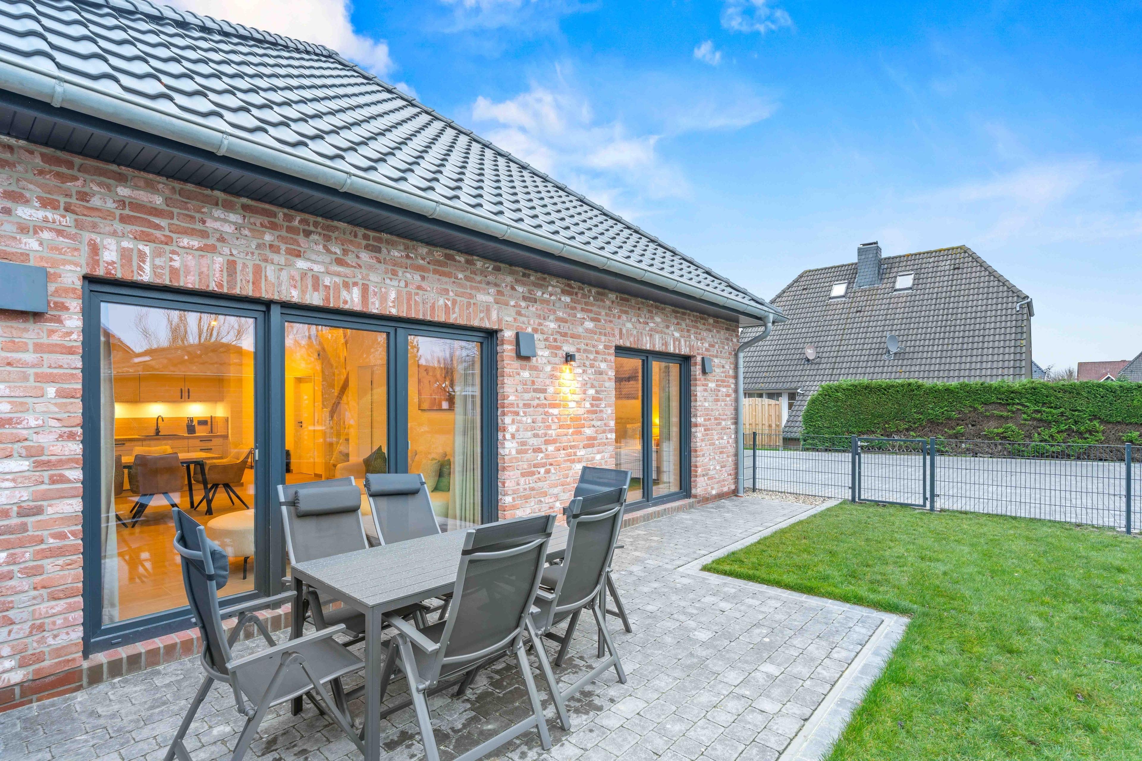 Unser neues Ferienhaus "Vista 12" befindet sich in sehr ruhiger Lage in einem traditionellen Ferienhausgebiet im Schollenweg. Auf etwa 110qm bietet es sich als stilvolles und hochwertig ausgestattetes Urlaubsdomizil für den gemeinsamen Urlaub mit der Familie oder Freunden an. Hierfür eignen sich besonders die drei Schlafzimmer mit bequemen Boxspringbetten, wovon sich zwei im Erdgeschoss und eins im Dachgeschoss befinden. Auch die beiden modernen Tageslichtbäder mit ebenerdigen Duschen bieten zusätzlichen Komfort. Das Herzstück des Hauses ist der lichtdurchflutete und großzügige Wohn- und Essbereich mit Sofalandschaft und einer erstklassigen Einbauküche, ideal für gesellige Abende. Auch ein Abstellraum mit Waschmaschine steht zur Verfügung. Der eingezäunte Garten mit großer Terrasse lädt zum Verweilen bei frischer Nordseeluft ein und auch Ihre vierbeinigen Begleiter sind hier herzlich willkommen! Im Außenbereich befindet sich außerdem ein Abstellraum für Fahrräder sowie ein PKW-Stellplatz.
