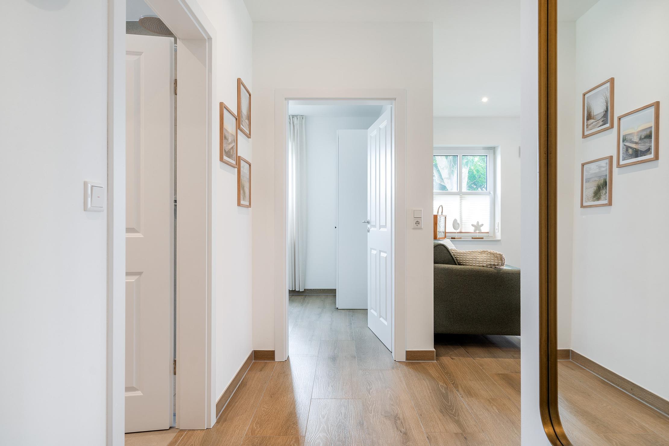 Rein kommen und wohl fühlen - dieses Gefühl wird Ihnen unsere neue Ferienwohnung "Vista 4" vermitteln. Auf etwa 70qm bietet diese Ferienwohnung einen hellen und vor allem gemütlich eingerichteten Wohnraum mit bequemem Sofa, eine voll ausgestattete Küchenzeile sowie einen Esstisch. Neben dem Tageslichtbad mit ebenerdiger Dusche und einem Abstellraum verfügt die Wohnung außerdem über zwei Schlafzimmer - eines davon bietet Ihnen beim Aufwachen einen Weitblick auf die Felder. Ausgestattet sind diese mit hochwertigen Boxspringbetten sowie ausreichend Ablagefläche. Ihr Hund wird sich im Garten wohl fühlen, während Sie sonnige Stunden in ruhiger Lage auf den bequemen Gartenmöbeln der Terrasse genießen. Ein eigener Parkplatz sowie eine Abstellmöglichkeit für Ihre Fahrräder sind selbstverständlich ebenfalls Bestandteil dieser Wohnung.