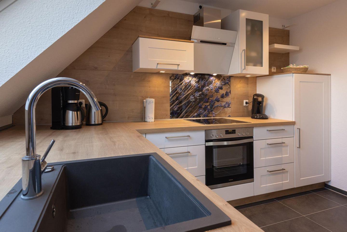 Der Küchenbereich lädt mit seiner umfassenden Ausstattung große und kleine Köche ein - hier ist gemeinsames Kochen und Backen ausdrücklich erwünscht! Und für den ungeliebten Abwasch steht ein Geschirrspüler bereit.