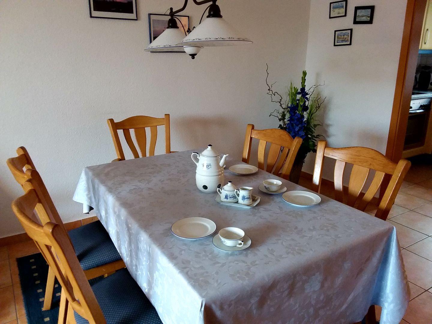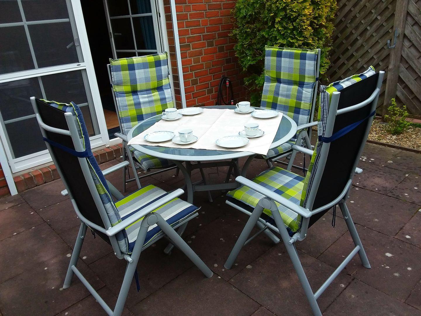 Die Ferienwohnung ist zudem hervorragend ausgestattet, um Ihren Aufenthalt so angenehm wie möglich zu gestalten. WLAN (Für ausreichende Geschwindigkeit und uneingeschränkte Verfügbarkeit übernehmen wir keine Gewähr) und ein Fernseher stehen selbstverständlich zur Verfügung, damit Sie sich auch in den Ruhezeiten bestens unterhalten fühlen. Außerdem genießen Sie den Blick in den Garten, in dem Sie bei schönem Wetter die frische Nordseeluft auf der privaten Terrasse mit Gartenmöbeln genießen können.
