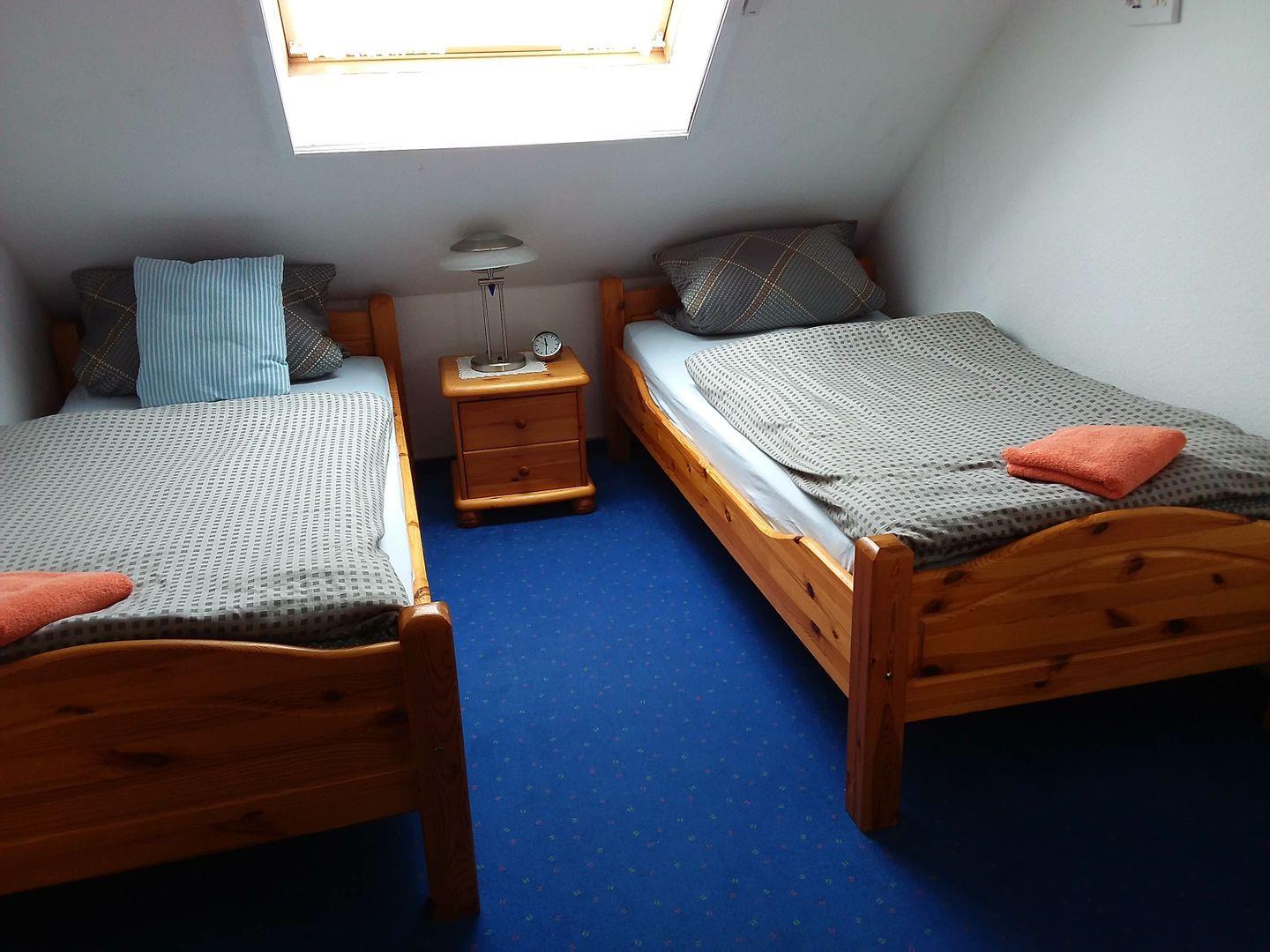 In den zwei einladenden Schlafzimmern, die mit Teppichboden ausgestattet sind, können Sie nach einem ereignisreichen Tag entspannt zur Ruhe kommen. Für zusätzlichen Komfort sorgt das moderne Badezimmer mit einer bodengleichen Dusche und extra Gäste-WC. Ausreichend Stauraum finden Sie in den praktischen Kleiderschränken und in der Garderobe.