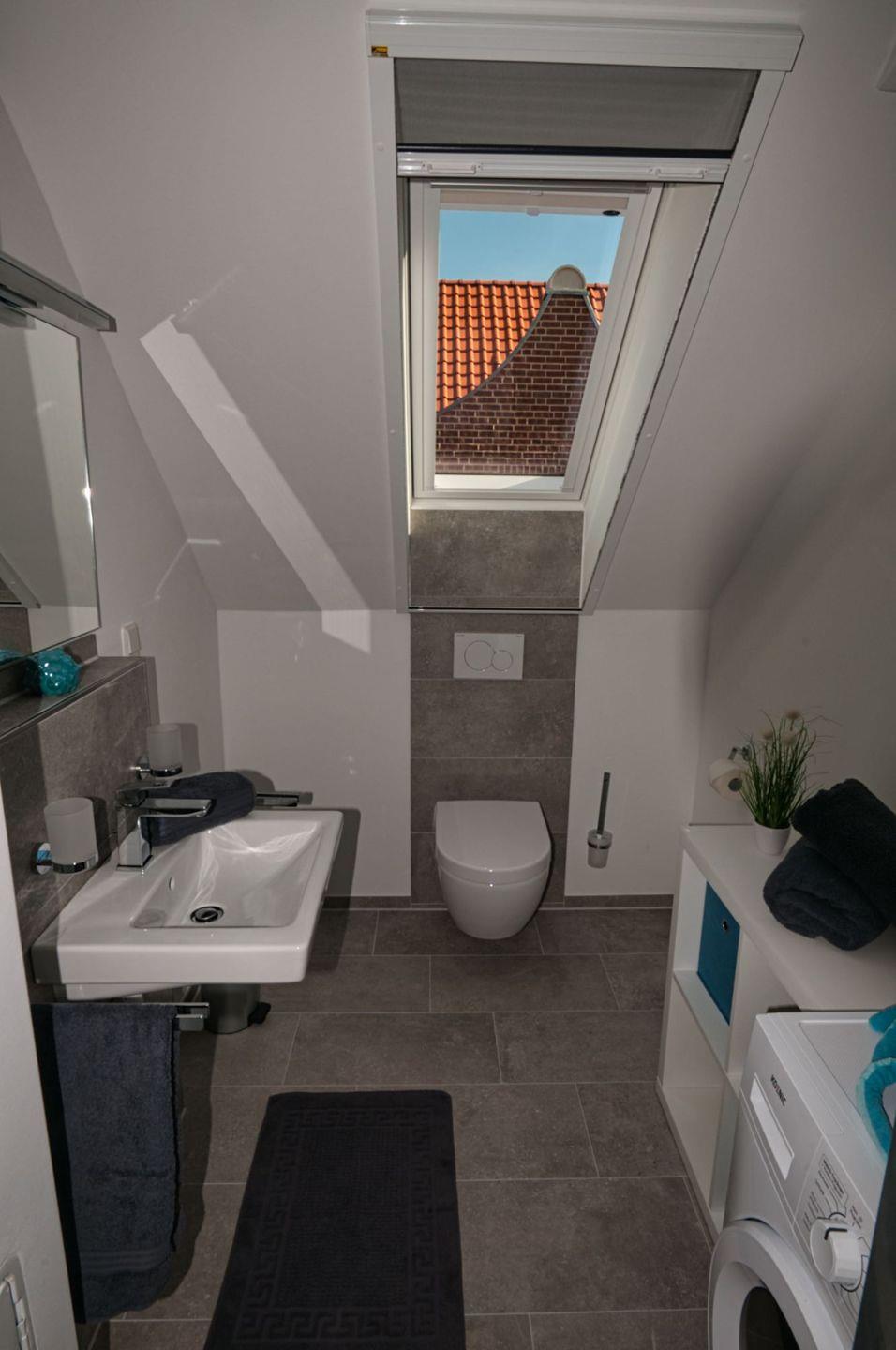 Im Obergeschoss befindet sich das zweite vollwertige Badezimmer mit einer Dusche und einem Fön, sowie einer Waschmaschine mit Trocknerfunktion. Im Haus sind zusätzlich eine Babybadewanne, eine Wickelauflage, ein Kinderhochstuhl, ein Wäscheständer und ein Bügeleisen vorhanden.