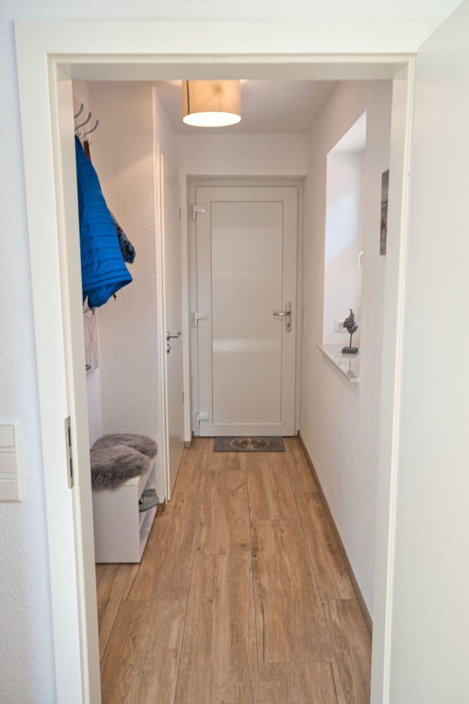 Alle drei Schlafzimmern sind mit einem Flachbildfernseher ausgestattet. Die Böden sind dort mit hochwertigem Vinyl ausgelegt. Die Übrigen Räume sind gefliest. Somit ist das Haus Allergiker freundlich. Alle Fenster sind mit Insektenschutzgittern und Plissees versehen. Die Schlafzimmer und das Badezimmer im EG sind mit elektrischen Jalousien versehen. Die Dachflächenfenster können durch die vorhandenen Rollos verdunkelt werden.