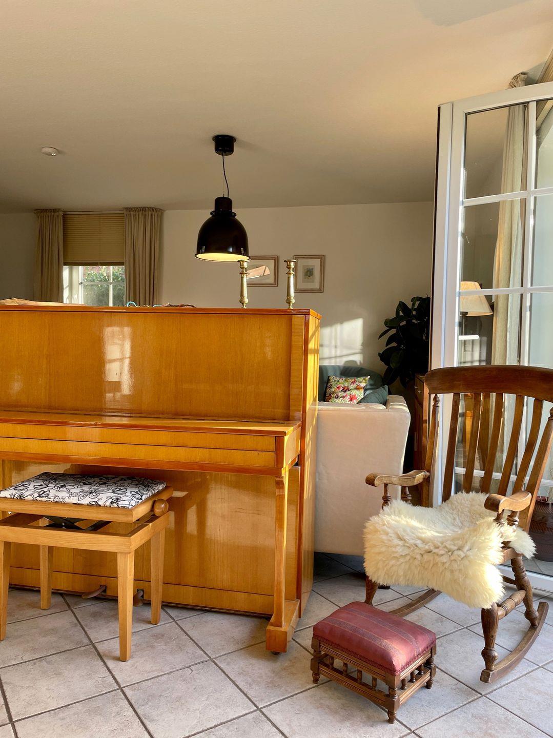 Im Wohnzimmer steht ein Klavier, auf dem gerne gespielt werden darf! Im Gartenhaus steht zudem eine große Künstlerstaffelei, die Künstlern zur Verwendung bereit steht.
