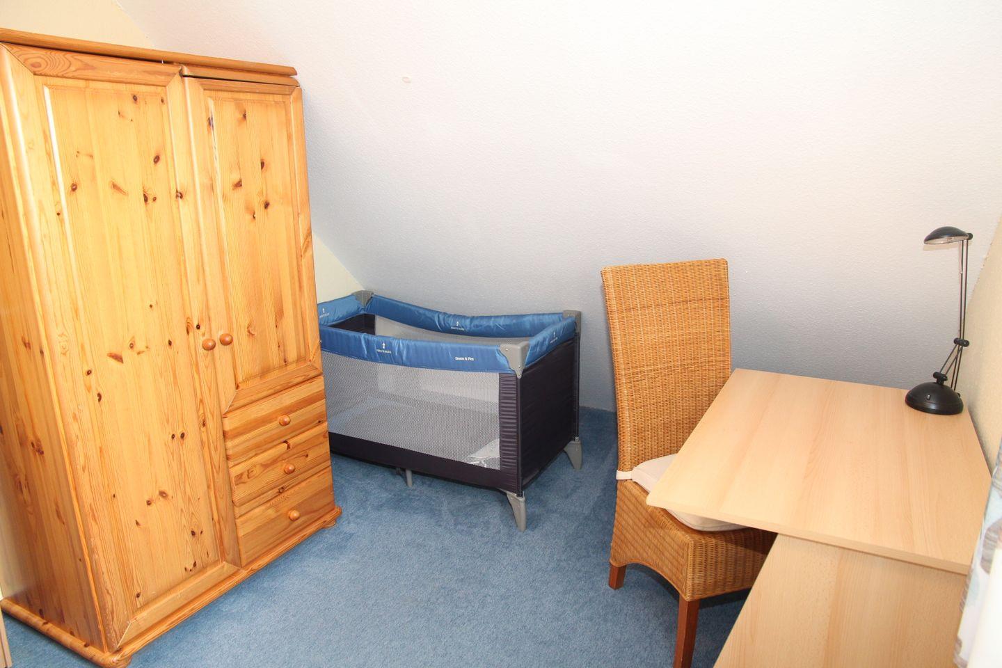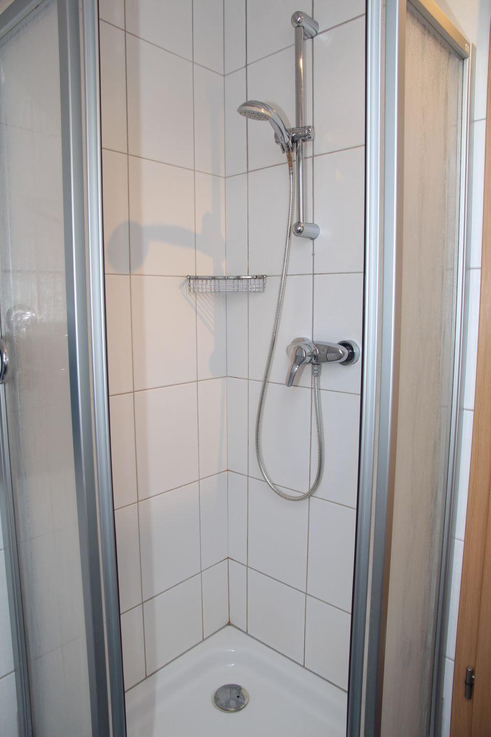 Oben befinden sich 2 Schlafräume (Kinderzimmer mit 2tem Fernseher) und ein Duschbad mit WC.