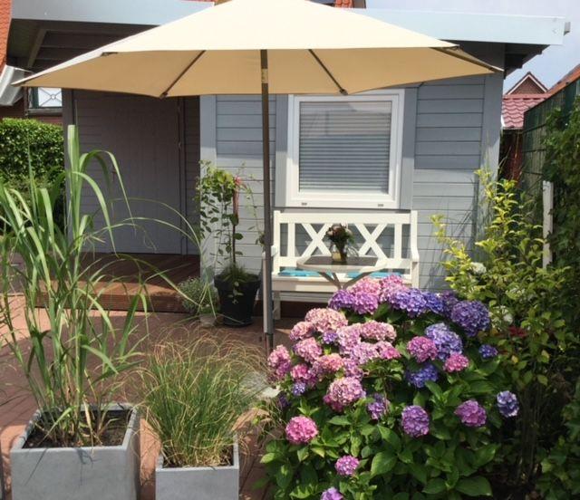 Ein Abstellhaus für Fahrräder ist ebenso vorhanden wie Gartenmöbel für 7 Personen, 2 Sonnenschirme, 2 Liegestühle, 1 Gartenliege, Bollerwagen, einen Weber Holzkohlegrill und einen Feuerkorb. Es befinden sich 2 Terrassen am Haus, die Sie je nach Sonnenlage nutzen können. Auch der zum Haus gehörende Strandkorb trägt zum Wohlfühlurlaub bei. Seit Sommer 2022 sind nun auch für das Terrassenglasdach zwei separat zu bedienende Markisen zur individuellen Beschattung hinzugekommen. Ebenfalls ist ein mobiler Ventilator vorhanden. Im Gartenhaus sind drei Kinderschwimmwesten in unterschiedlichen Größen vorhanden.