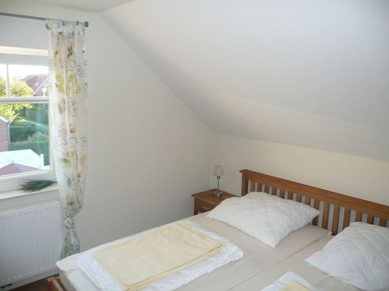 Das Haus verfügt über 3 Schlafzimmer (ein Schlafzimmer ist mit einem LCD-TV ausgestattet - Anschlüsse sind in allen Schlafräumen vorhanden), eines der Schlafräume befindet sich im Erdgeschoss (Doppelbett 2x2m mit verstellbaren Lattenrosten), die beiden anderen Schlafzimmer befinden sich im Obergeschoss. Alle Schlafzimmer verfügen über Außenjalousien. Ein Schlafzimmer dort ist mit einem Doppelbett ausgestattet (2x2m), das andere mit 2 Einzelbetten (2x0,90 m). Das Kinderbett kann in den oberen Schlafräumen aufgestellt werden. Ein Duschbad ist behindertengerecht mit Duschhocker und Wandhalterung ausgestattet.