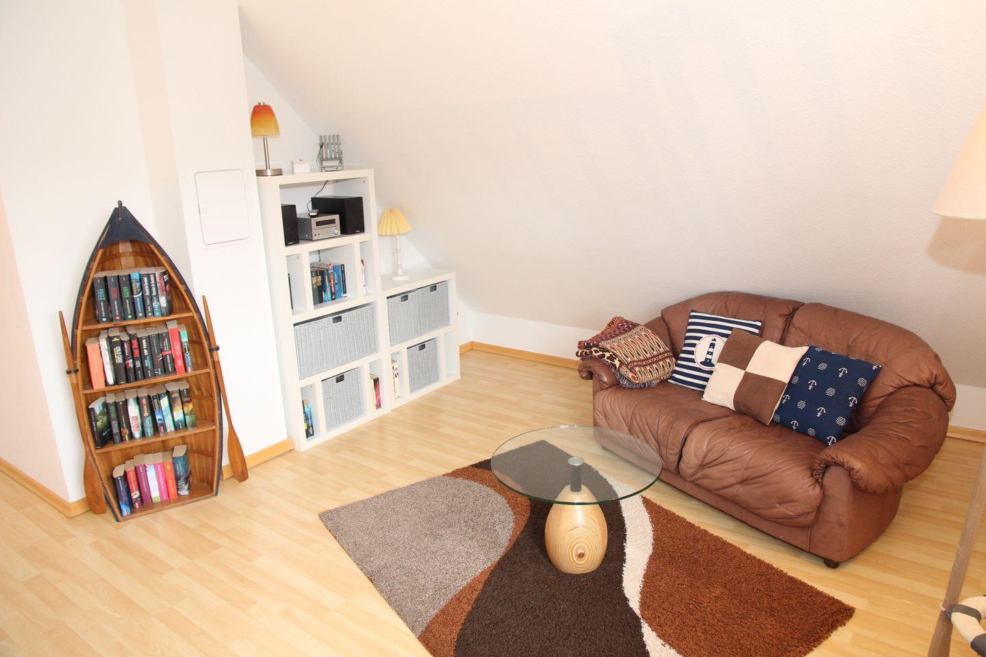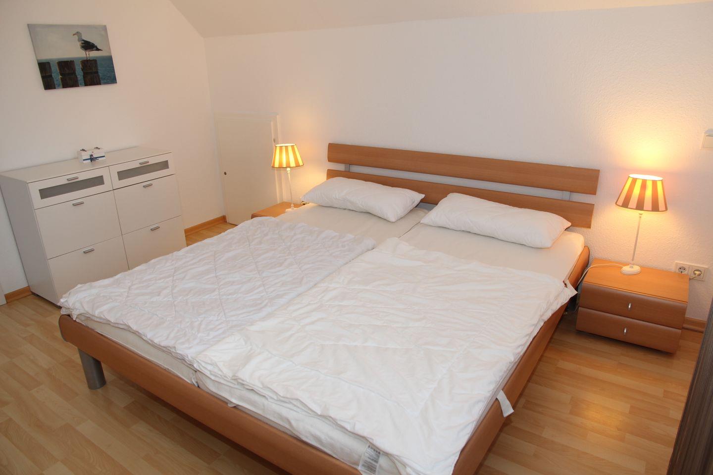 Ein Schlafzimmer, welches sich im OG befindet, ist zudem mit einem 2. Fernsehgerät ausgestattet. Vom Schlafzimmer aus gelangt man direkt ins angrenzende Badezimmer mit Dusche.