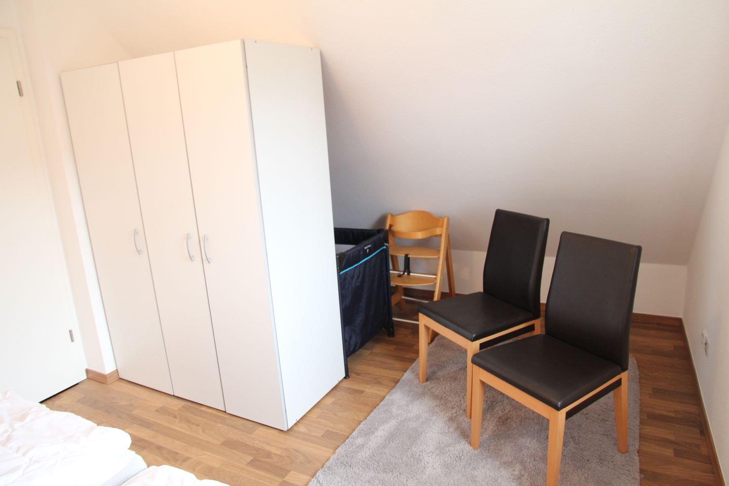 Die Fenster sind mit Fliegengittern versehen, Kinderbett und Hochstuhl stehen kostenlos zur Verfügung.