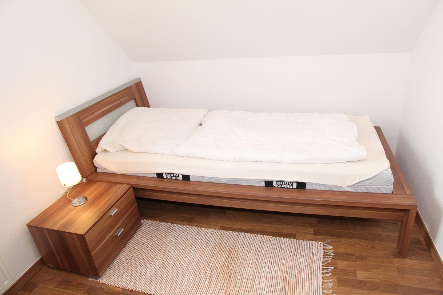 Die Hanna verfügt über 2 Schlafzimmer (Doppelbett + 2 Einzelbetten) die sich im Obergeschoss befinden. Die Schlafräume lassen sich mit Außenjalousien abdunkeln. Auch ein Gäste-WC befindet sich auf der oberen Etage. Das WC ist gefliest, die Schlafräume sind mit Laminat ausgelegt. Das Erdgeschoss ist komplett gefliest und verfügt über Fußbodenerwärmung und einen Kaminofen, der für gemütliche Abende sorgt. Das große Wohn-Esszimmer ist geschmackvoll eingerichtet. Die separate Küche verfügt über eine Geschirrspülmaschine, Senseo-Padmaschine, Kaffeemaschine, Wasserkocher, Toaster, Mikrowelle, Backofen, Kühlschrank mit Gefrierfach u.v.m. Im Erdgeschoss befindet sich auch das helle Duschbad mit Fenster.