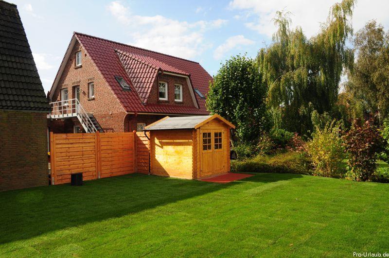 Das Haus verfügt über einen großen, nicht einsehbaren Garten, so dass man sein Frühstück ungestört auf der möblierten Terrasse einnehmen kann. Ein Gartenhaus zum Abstellen von mitgebrachten Fahrrädern ist ebenfalls vorhanden. Ein Grill steht zur Verfügung.