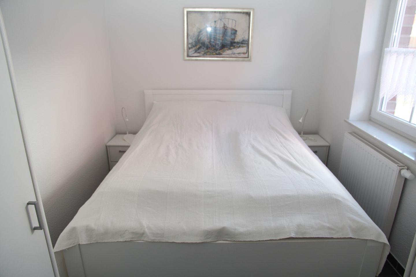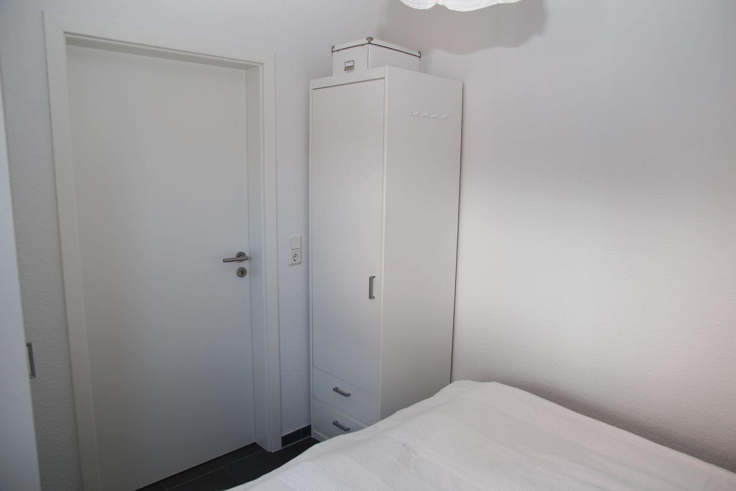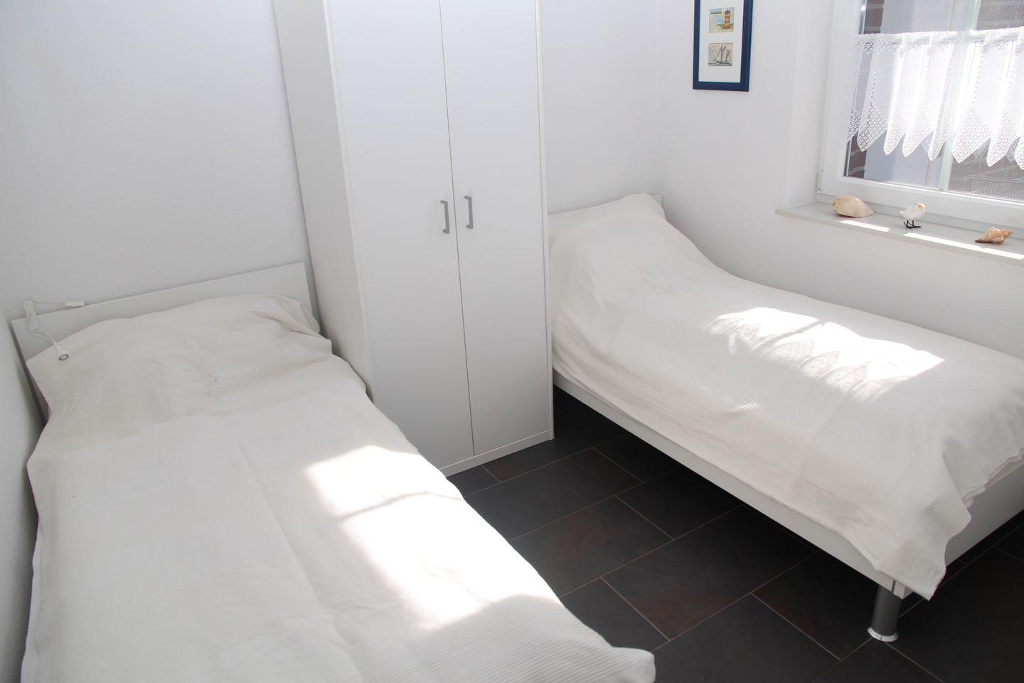 Ein Schlafraum ist mit einem Doppelbett (160 x 200 cm), der andere Schlafraum mit 2 Einzelbetten (90 x 190 cm) und weiterem TV ausgestattet. Diese Zimmer können mit Außenjalousien verdunkelt werden.