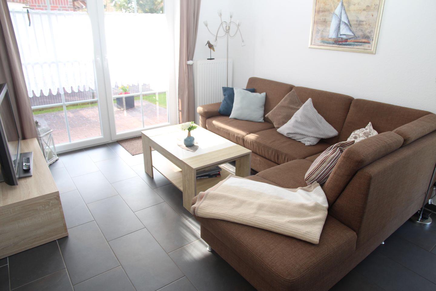 In der Nähe der Zwillingsmühlen in ruhiger Lage Greetsiels liegt die modern eingerichtete Erdgeschosswohnung für 4 Personen mit möblierter Terrasse.