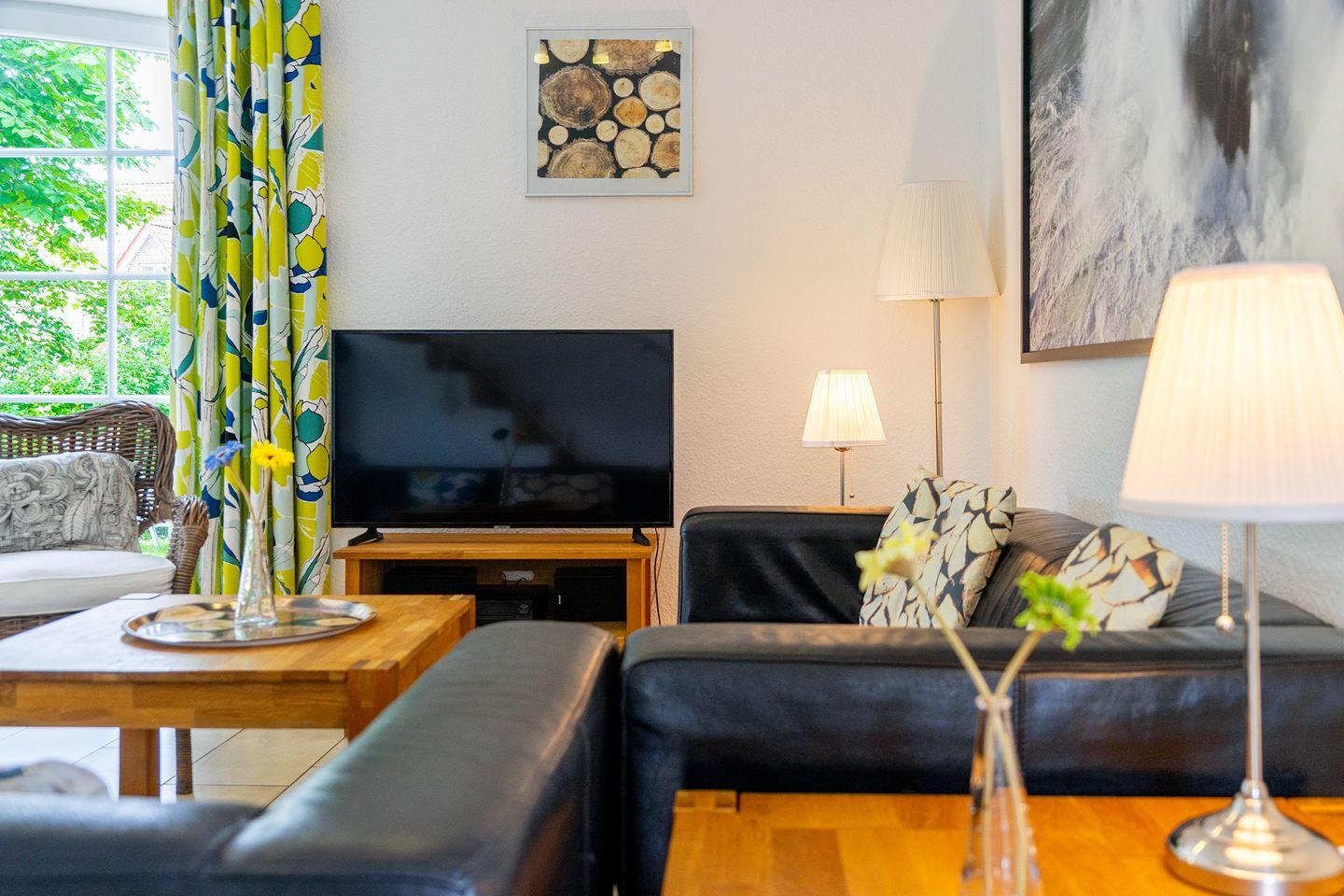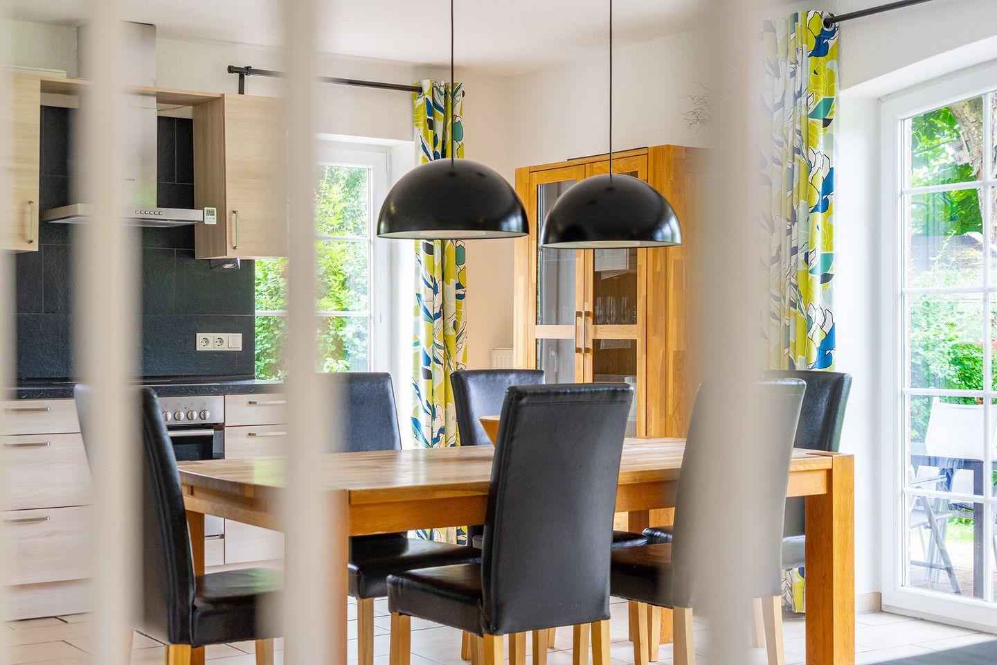 Das Haus Sielstern, fertiggestellt im Januar 2013, verfügt über einen großzügigen Wohn-Essbereich mit angenehmer Fußbodenerwämung, drei Schlafzimmern und zwei Bädern. Die gemütliche Ledercouch im unteren Wohnbereich lädt zum Verweilen vor dem Kaminofen oder dem Flachbildfernseher (inkl. WLAN Stick für Videoempfang) ein. Die komplett ausgestattete Küche (Geschirrspüler, großer Kühlschrank mit großem Gefrierfach, Mikrowelle, Kaffeemaschine, Wasserkocher, Toaster, Eierkocher u.v.m.) lässt keine Wünsche offen. Das Haus verfügt über 2 Terrassen mit Gartenstühlen und 2 Gartenliegen von wo aus Sie den herrlichen Blick aufs Wasser genießen können. Im Erdgeschoss befindet sich außerdem noch ein Schlafzimmer mit einem Doppelbett und ein großes Badezimmer mit einer 2 Personen-Sauna und eine ebenerdige Dusche, auch ein Handtuchwärmer ist vorhanden. Das komplette EG ist für Rollstuhlfahrer geeignet, auch die Zuwegung zum Haus wurde angepasst.