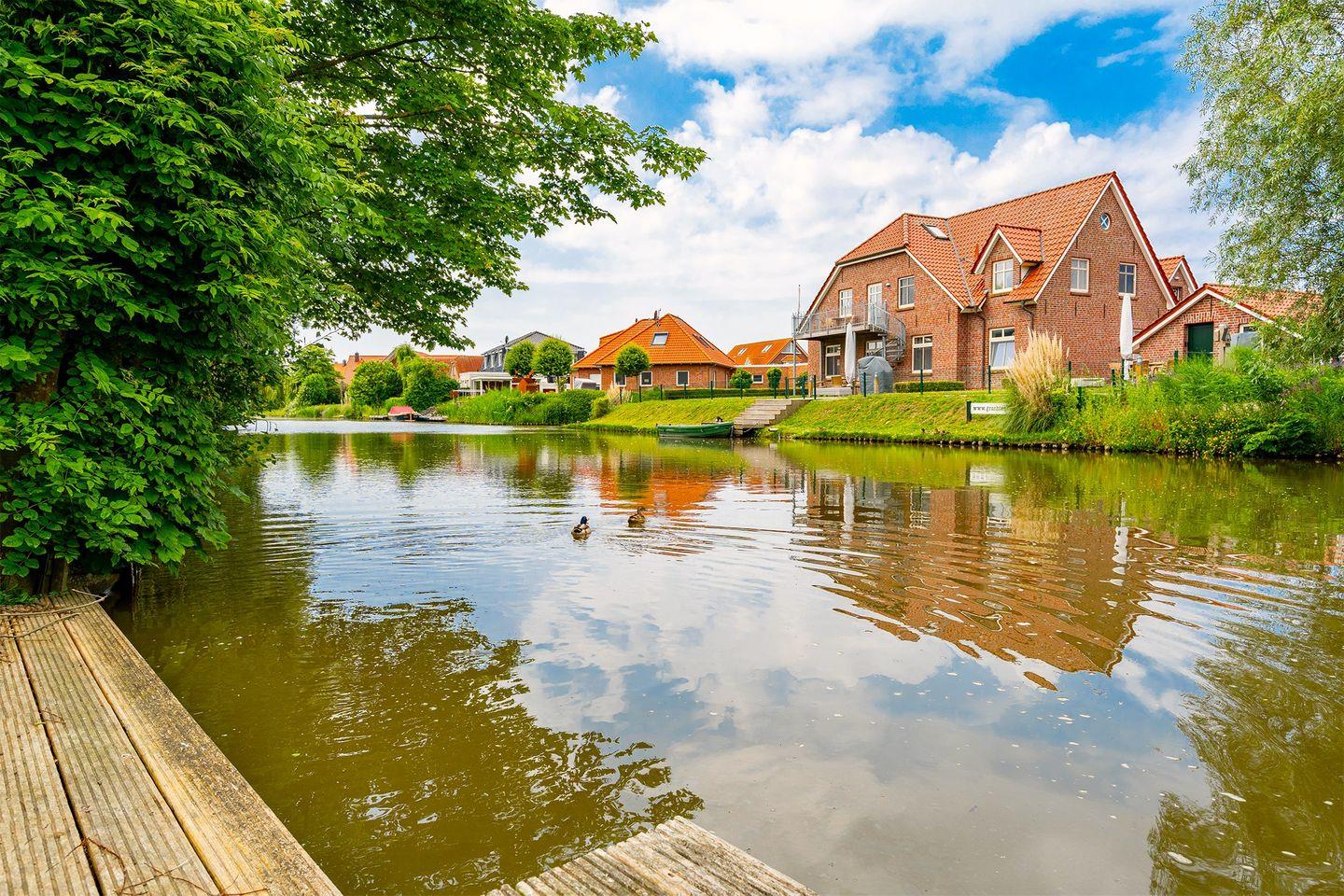 Tolles Friesenhaus für 6 Personen in Toplage direkt am Greetsieler Sieltief mit Steganlage und umzäunten Garten