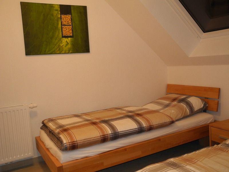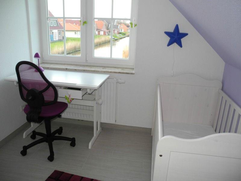 Neben einem vollwertig ausgestatteten Kleinkindzimmer (Babybett, Wickelkommode, Hochstuhl, Spielzeug, kleiner Schreibtisch auch für Erwachsene sowie Multifunktionsdrucker mit Druck-, Kopier- und Scanfunktion [Papier ohne Gewähr], stehen zwei weitere Schlafräume im Ober- und Dachgeschoss zur Verfügung. Das Schlafzimmer im Obergeschoss bietet einen geräumigen Kleiderschrank sowie zwei Einzelbetten (90x200 cm), die auf Wunsch zu einem Doppelbett zusammengeschoben werden können.