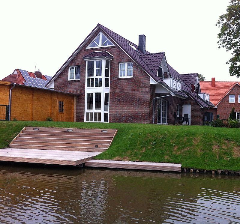 Das Grachterum bietet zudem einen kleinen, möblierten Sonnen-Balkon, auf dem Sie mit Blick auf die Gracht schöne Stunden verbringen können. Zum gemütlichen Beisammensein oder als Ziel einer Tretboottour (Boote im Hafen zu mieten) auf den Greetsieler Grachten lädt der gemeinsame Bootssteg hinter dem Haus ein.