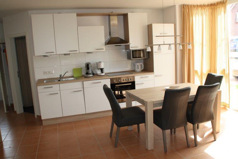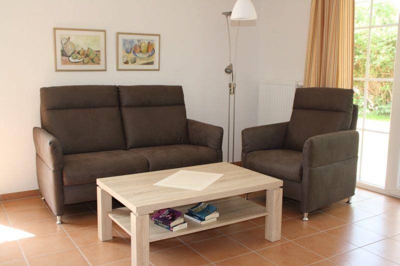 Ein großzügiger Wohn- Essbereich mit schöner, reichhaltig ausgestatteter Küche, z. B. Backofen, Mikrowelle, Geschirrspülmaschine, Kühlschrank mit Gefrierfach, Kaffeemaschine + Senseo Kaffeepadmaschine, Wasserkocher, Toaster u.v.m.. Zur Verfügung steht Ihnen ein gemütliches 2-er Sofa und ein bequemer Sessel und ein LCD-TV, DVD-Player und Musikanlage.