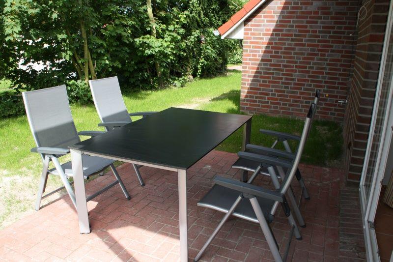 Es gibt eine teilweise überdachte, möblierte Terrasse für sonnige Stunden.