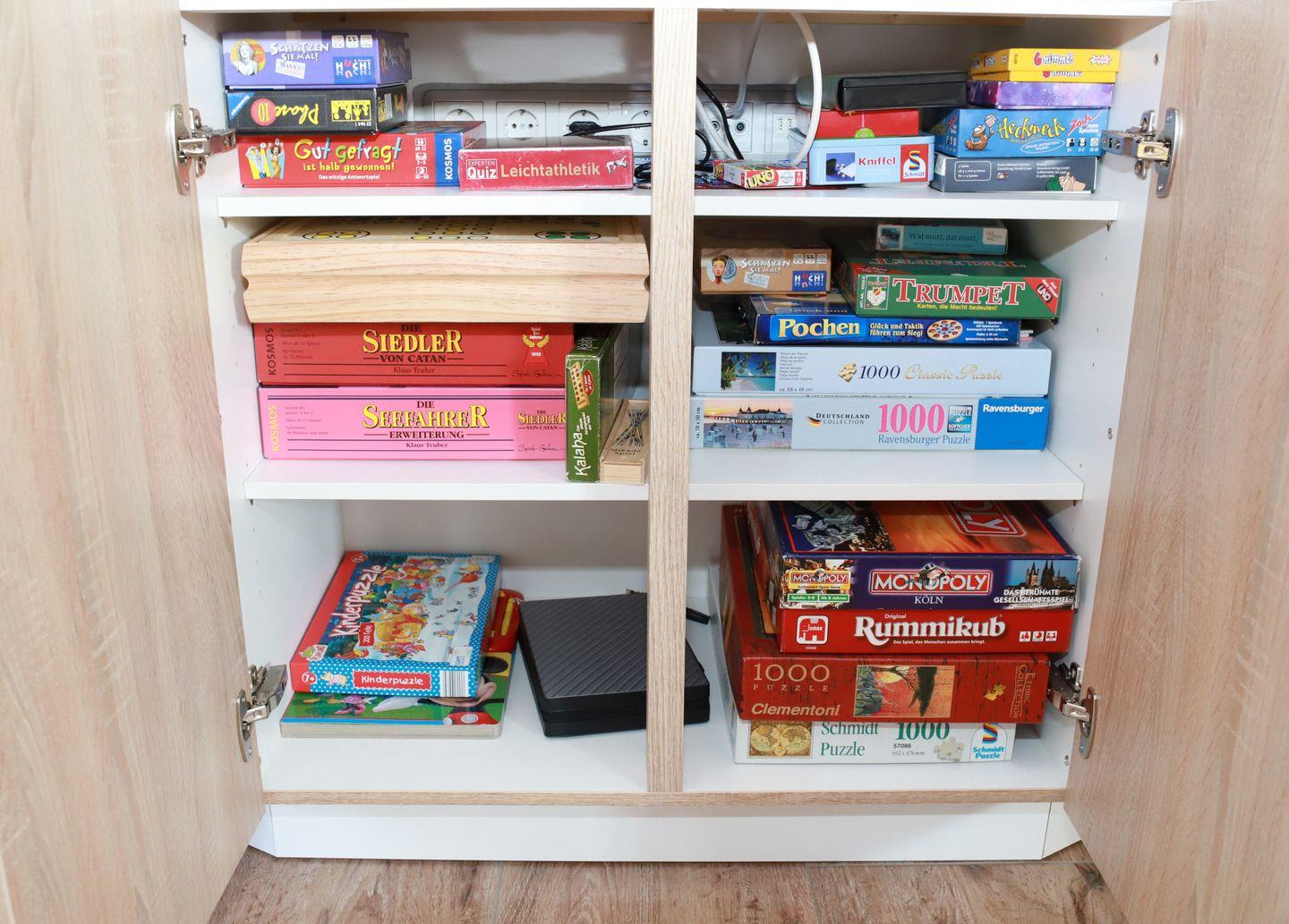 Ein gemütliches Sofa mit zwei Cocktailsesseln, ein großer Fernseher, eine Musik- und Radioanlage (USB Anschluss), verschiedene Bücher und Spiele sorgen für Entspannung und Unterhaltung.