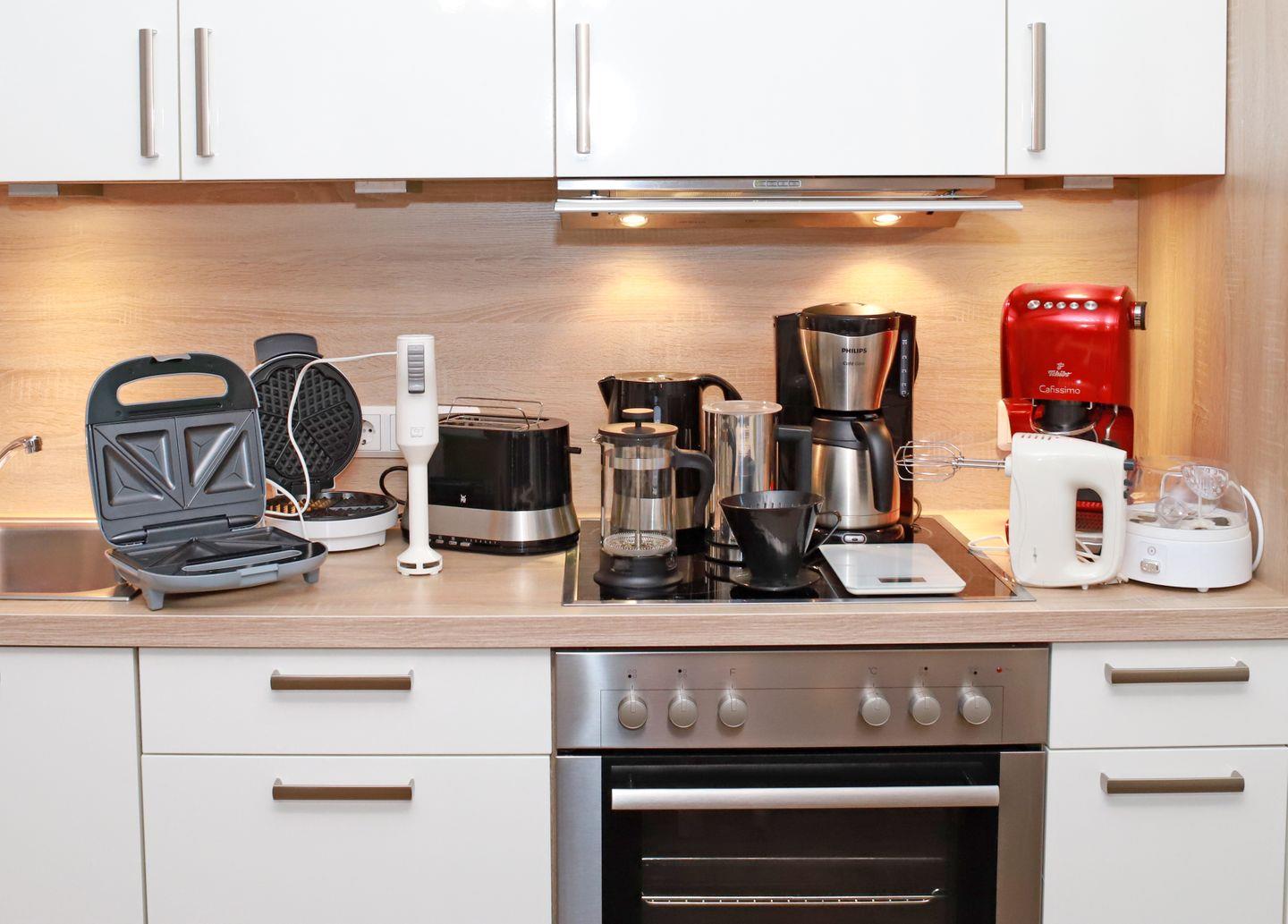 Die moderne Küche bietet eine reichhaltige Ausstattung, z. B. Backofen, Mikrowelle, Kühlschrank mit Gefrierfach, Geschirrspülmaschine, Waffel-/Sandwitcheisen, Toaster, Handmixer, Pürierstab, Wasserkocher, Eierkocher, Küchenwaage, eine große Auswahl an Koch- und Backgeschirr, Geschirr und Gläsern. Und für alle Kaffeeliebhaber gibt es eine Philipps-Kaffeemaschine, French-Press oder Handfilter sowie einen separaten Milchaufschäumer.