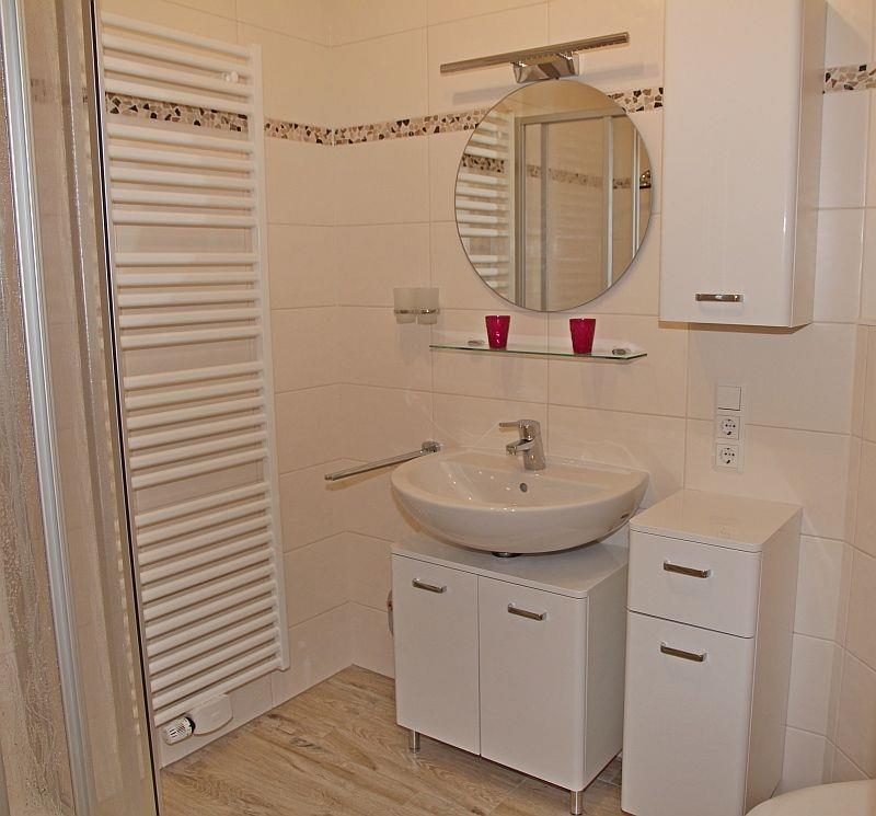 Zusätzlich zum Duschbad mit WC, Handtuchheizkörper und Föhn gibt es ein Gäste-WC.