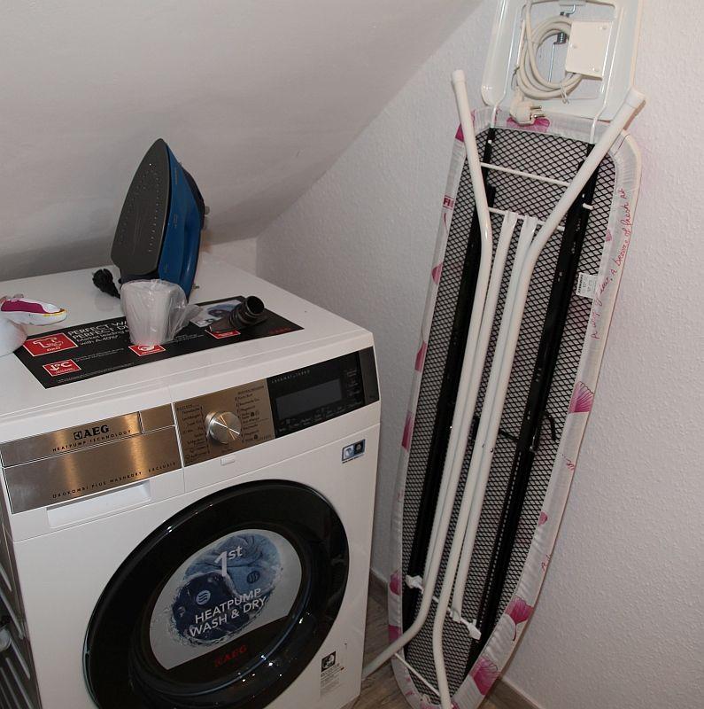 Im Abstellraum befindet sich ein Wasch/Trockner, ein Bügeleisen und -brett.