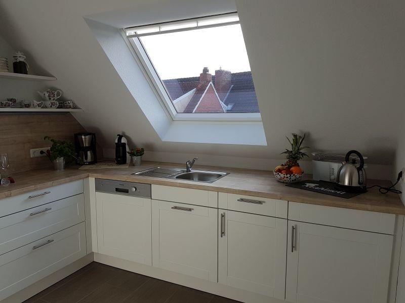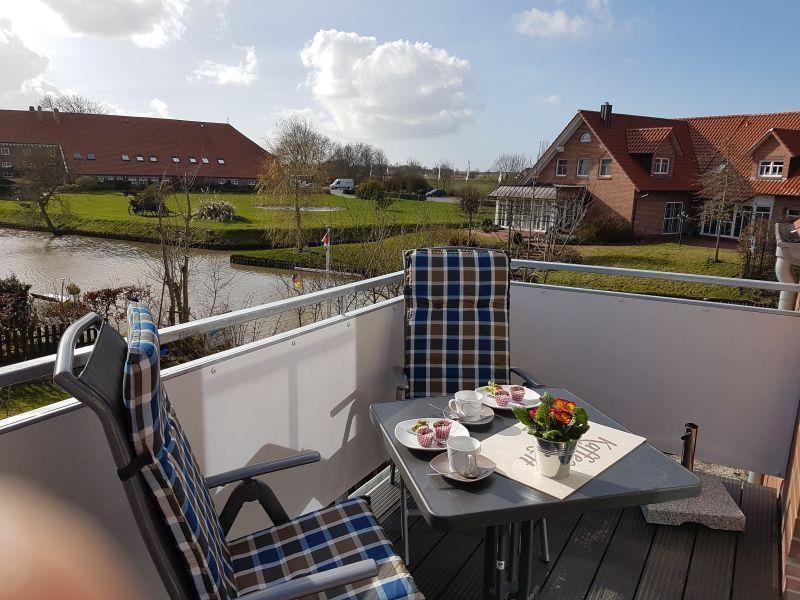 Sie residieren mit einem herrlichen Weitblick vom Südbalkon über die Nachbargärten und das „neue Greetsieler Sieltief“. Die Wohnung ist allergikerfreundlich eingerichtet, der Fußbodenbelag besteht aus Fliesen, im Dachgeschoss ist Laminat verlegt.