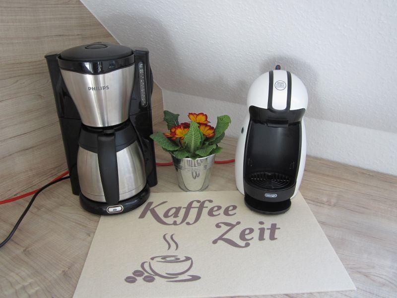Angrenzend an den großzügigen Wohn-Essbereich befindet sich die sehr gut ausgestattete Küche mit Backofen, Ceranfeld, Mikrowelle, Geschirrspüler, Dolce Gusto Pad Maschine, Kaffeemaschine, Kühlschrank mit Gefrierfach und einem Waschtrockner (Kombination aus Waschmaschine und Trockner).