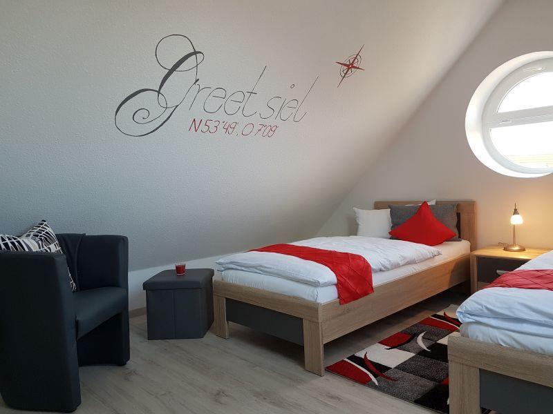 Herzlich Willkommen in unserer wunderschönen Nichtraucher-Wohnung Sielresidenz im Obergeschoss des Hauses Achterum 19, die sich in Greetsiel, mit Blick auf das „neue Greetsieler Sieltief“, befindet. Die Zwillingsmühlen, der Ortskern sowie der Hafen sind fußläufig gut erreichbar.