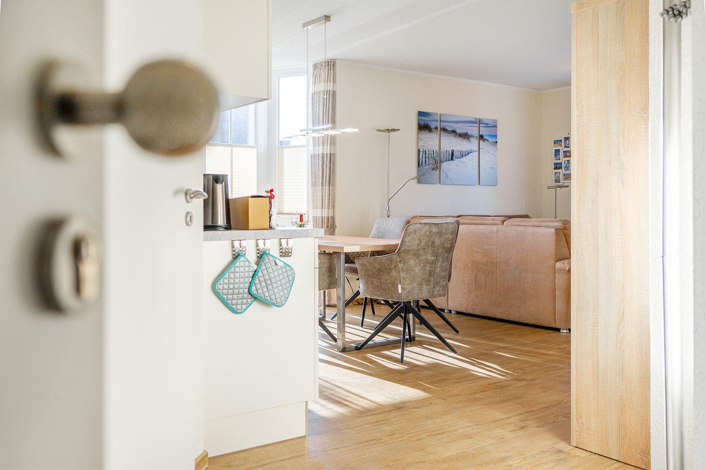 Die 'Sielperle' ist komplett mit Vinyl und Fußbodenheizung versehen, alle Fenster haben Fliegengitter, und Sichtschutz (Plissees und Vorhänge), im Schlafzimmer Verdunklungs-Jalousien. Zu Ihrer Sicherheit sind Rauchmelder installiert.