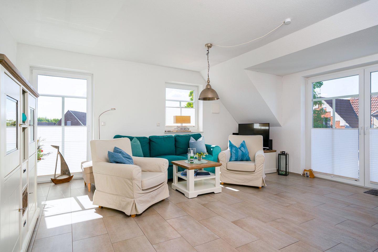 ...in der exklusiv ausgestatteten Obergeschosswohnung "Frieso am Siel" mit Blick auf das Neue Greetsieler Sieltief.