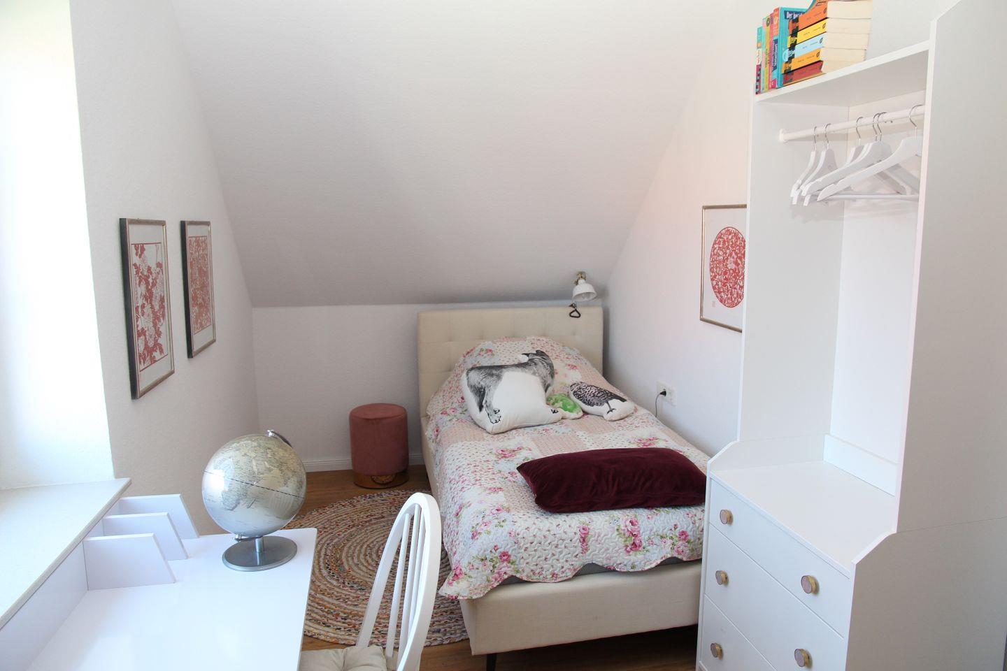 Ein Schlafzimmer und ein Badezimmer runden das Raumangebot im Erdgeschoss ab. Das moderne Bad überzeugt mit viel Platz, einer ebenerdigen, großen Rainshower-Dusche und einer Sauna, selbstverständlich finden Sie hier auch einen Fön. Im Schlafzimmer erwartet Sie ein bequemes Boxspringbett (1,60 x 2m) mit schönem Blick aufs Meer(bild) und einen offenen Kleiderschrank.