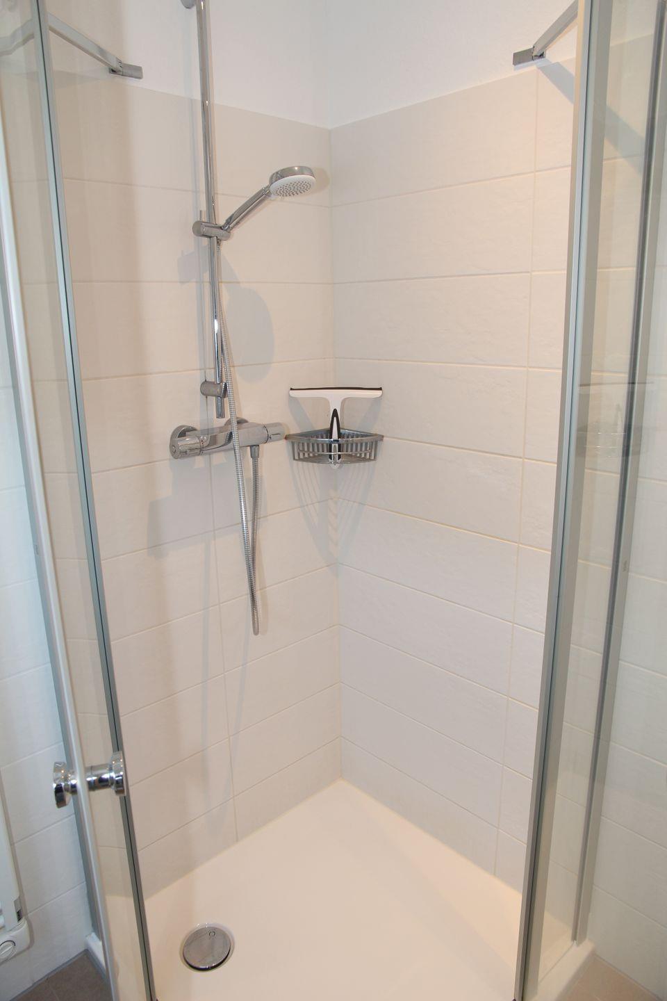 Das Badezimmer mit ebenerdiger Dusche, Waschbecken, Handtuchtrockner und Föhn ist komplett ausgestattet. Im Abstellraum steht Ihnen eine Waschmaschine zur Verfügung.