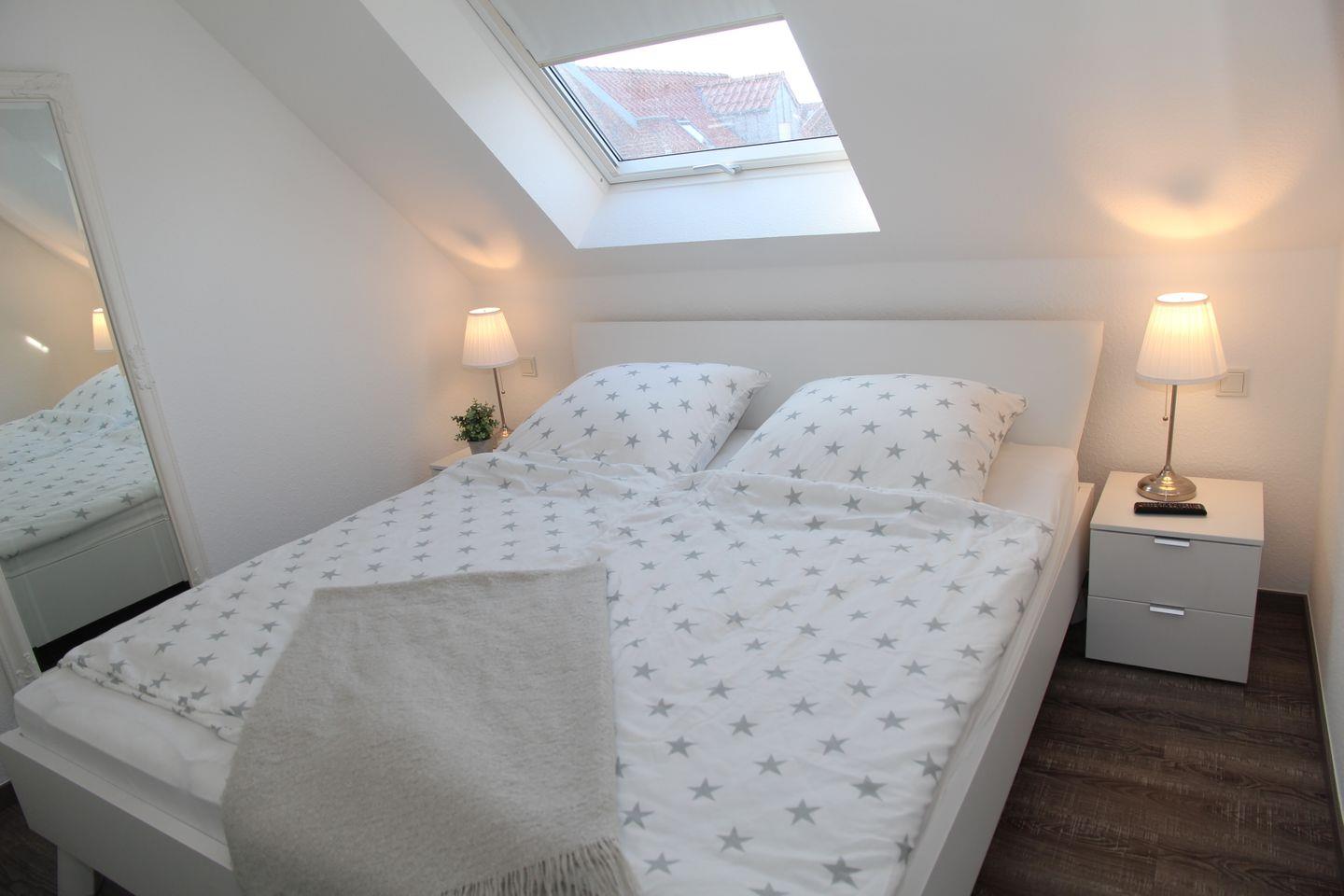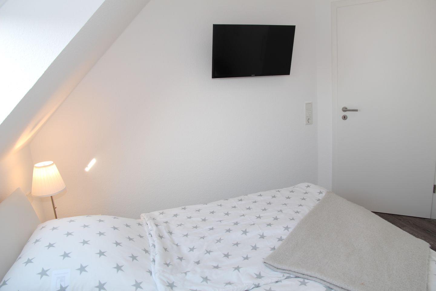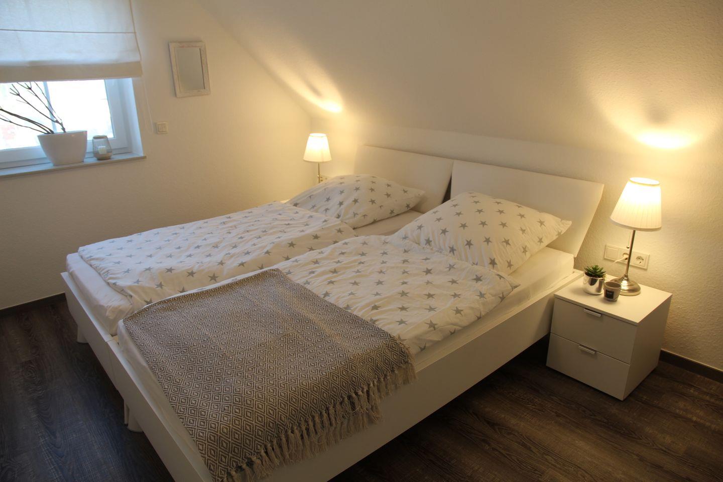 Die Deichbude ist mit allem Komfort ausgestattet, es bleiben keine Wünsche offen. Sie verfügt über insgesamt 3 Schlafzimmer, wobei sich eines auf der oberen Galerie befindet. Ein Schlafzimmer auf der 1. Etage ist mit einem Doppelbett ausgestattet, die anderen beiden mit jeweils zwei Einzelbetten, die auch zusammen gestellt werden können. Die Fußböden sind mit einem Vinylboden in Holzoptik ausgestattet und verfügen über eine angenehme Fußbodenheizung. Die Fenster lassen sich alle abdunkeln. In jedem Schlafzimmer befindet sich ein Smart-TV.