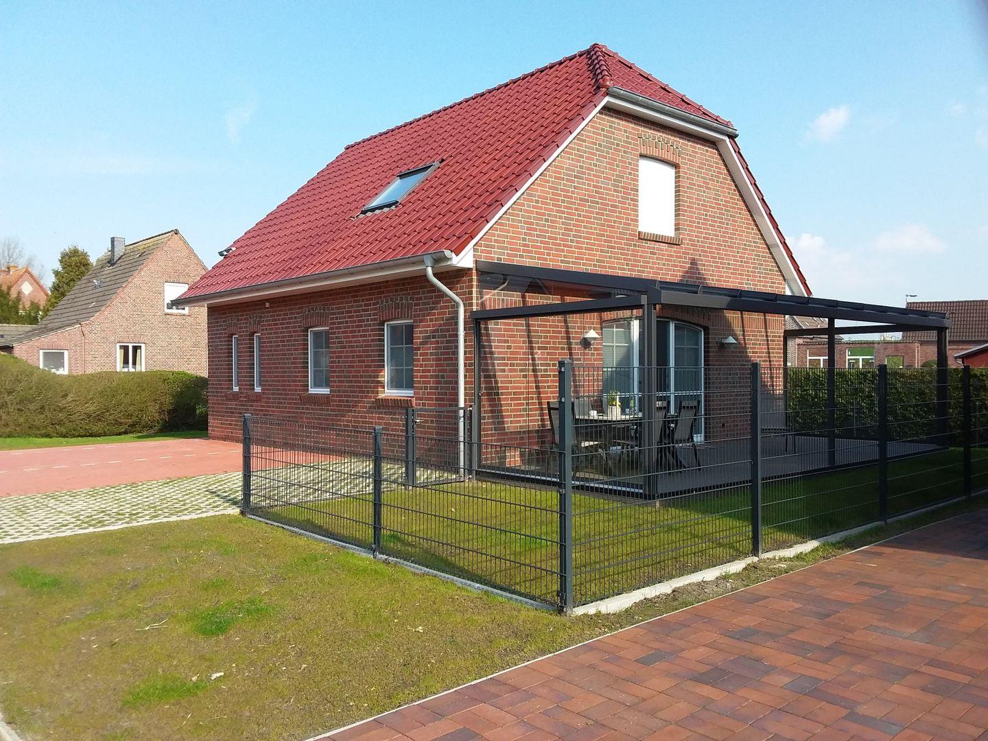 Der komplett eingezäunte Garten lädt mit einer überdachter Terrasse mit Seitenwänden und elektr. Sonnenschutz nicht nur für die Sommerzeit, sondern auch im Frühjahr und Herbst zum 'Teetrinken' und entspannen ein.