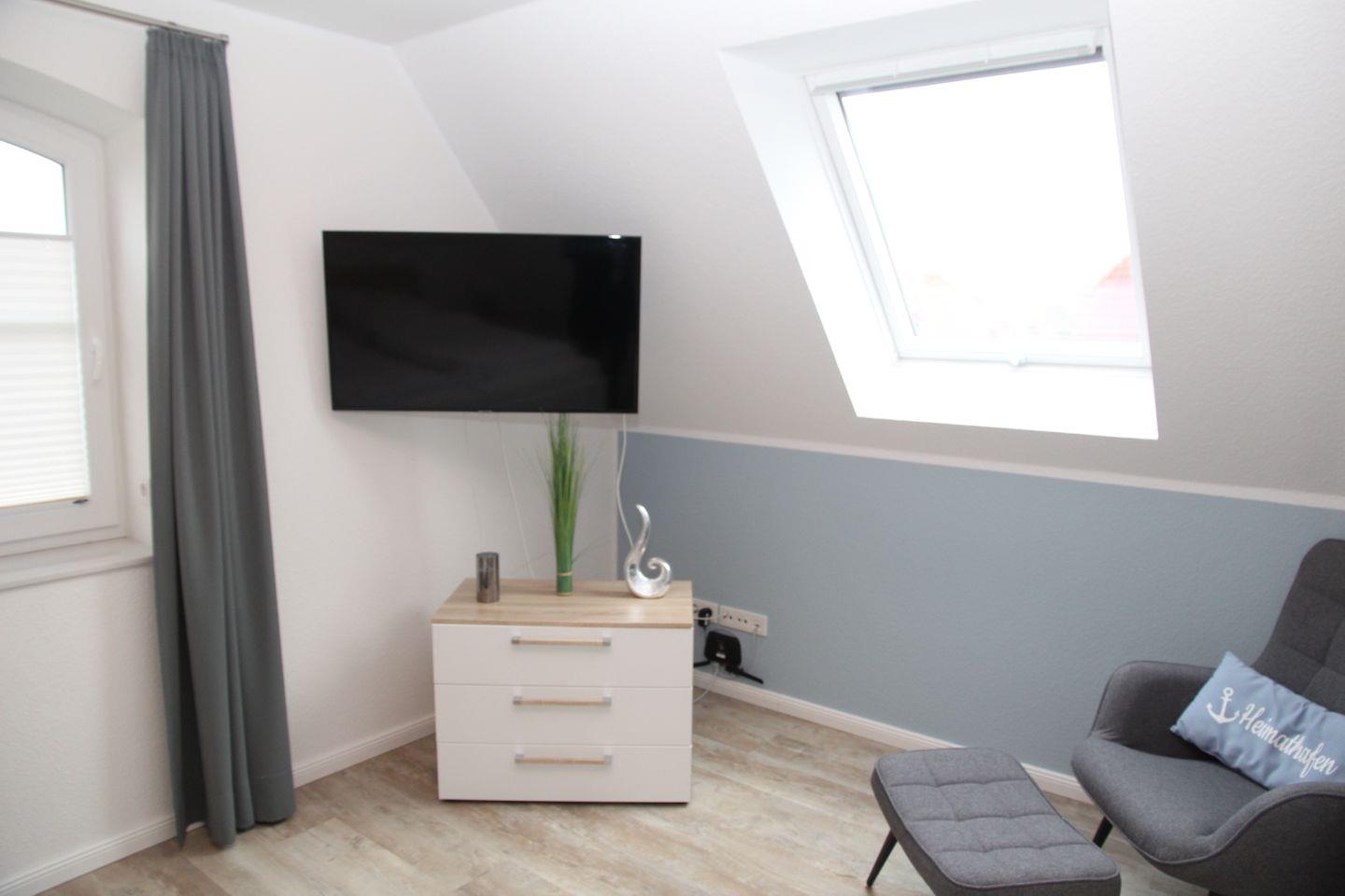 Im Wohnzimmer ist ein Flachbildfernseher mit 2 USB-Anschlüssen, Blu-ray und CD-Funktion sowie ein Radio für Sie aufgestellt. Vorhandene DVD's und Spiele dürfen Sie gerne nutzen.